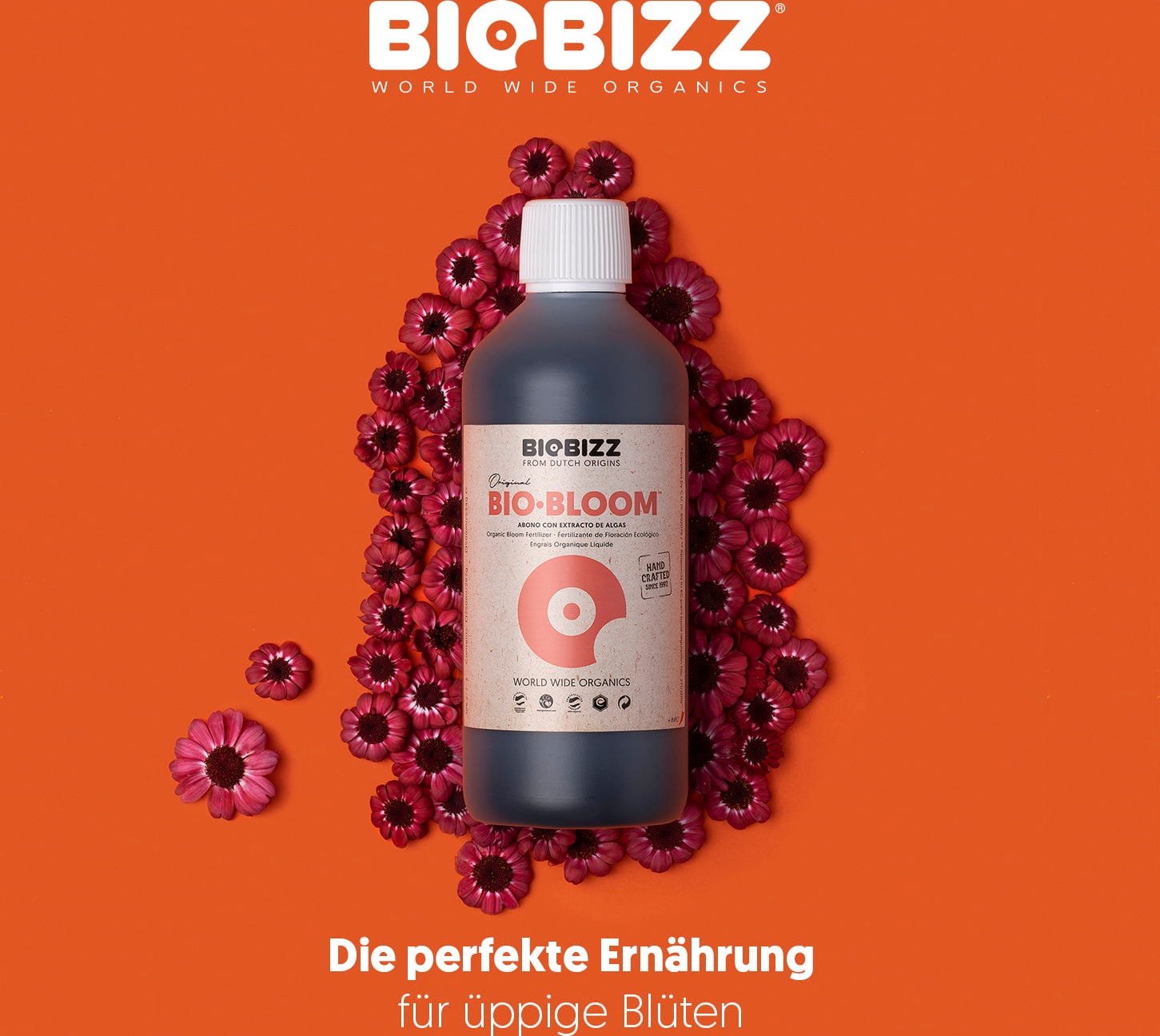 A Bio-Bloom folyékony műtrágyát akkor kell alkalmazni, amikor a lédús és ízletes gyümölcsök fejlődéséről van szó. A kálium, foszfor, nitrogén, enzimek és aminosavak támogatják a virágok növekedését, és ezzel megteremtik a megfelelő alapot a későbbi sikeres betakarításhoz. Emellett a nyomelemek és a növényi eredetű hormonok gondoskodnak az erős szárakról és az erőteljes virágokról. Hidropóniás növényekhez is használható!