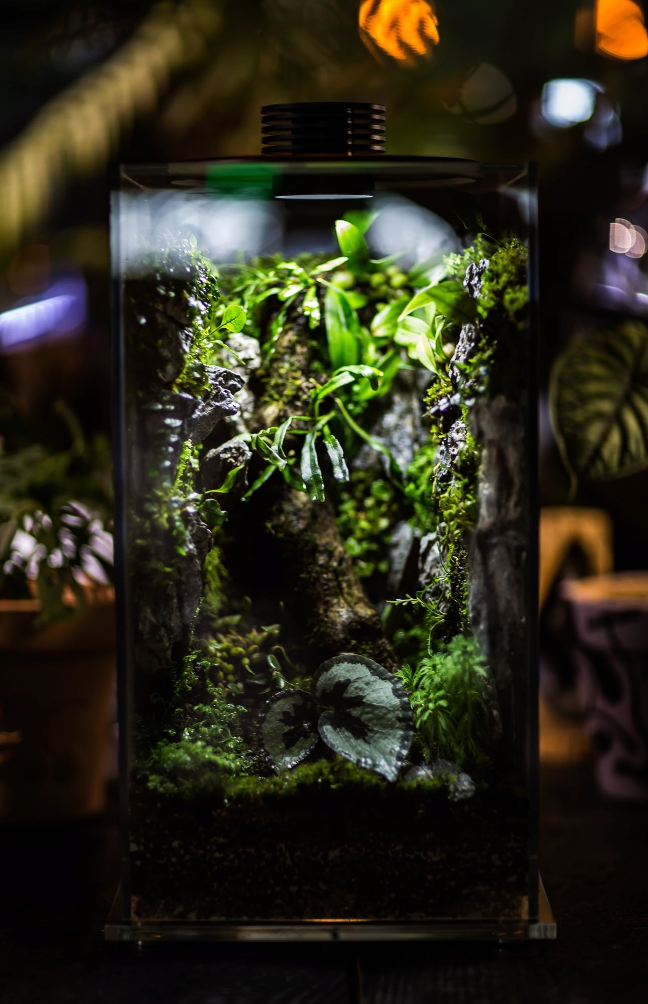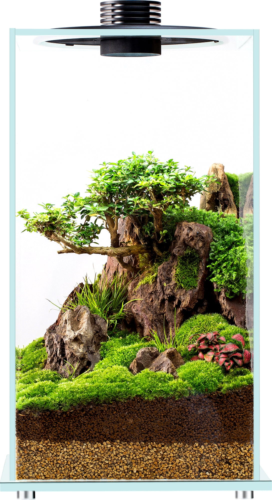 A fedélben található, egyénileg állítható nyílások folyamatos könnyű légáramlást garantálnak. Azonban lehetővé teszik a zárt, nedves biotópok létrehozását is. A LED-eket egy csendes ventilátor hűti le; ez akár 30.000 órára is növelheti a LED-ek élettartamát.
