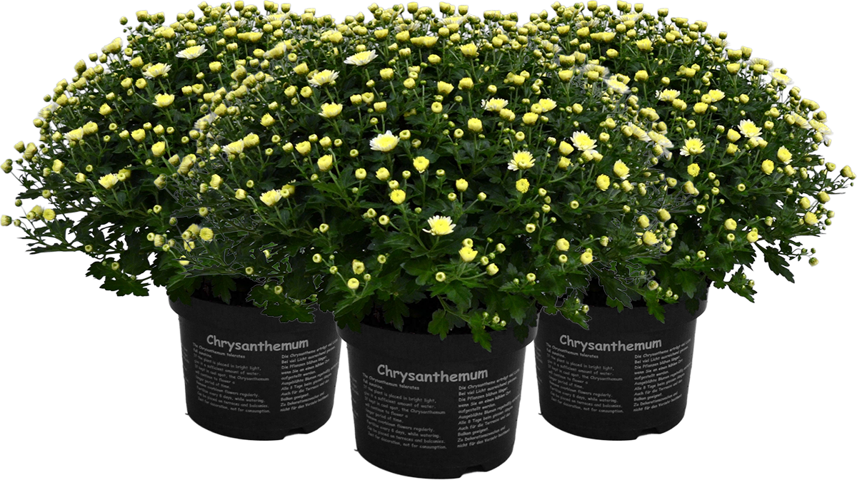 A kb. 10,5 cm átmérőjű, három darabos krizantém virág szett élénk színt visz kertjébe vagy erkélyére ősszel. Ezek a robosztus, bokros növények könnyen gondozhatók, bőségesen virágoznak, és vágott virágnak is alkalmasak. Tökéletesek mindazok számára, akik színes, tartós dísznövényekre vágynak.