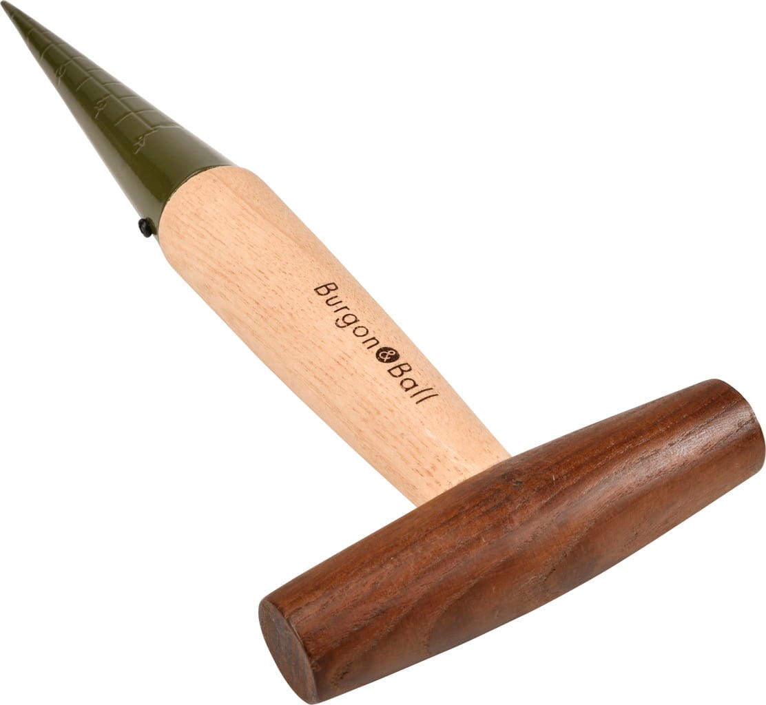 Ez az ültetőfa ideális segítség a hagymák, palánták és fiatal növények elültetéséhez. A feje mélységmérővel van ellátva, amely megkönnyíti a megfelelő mélységbe történő ültetést. Az edzett bóracélból készült hegynek köszönhetően gyorsan és egyszerűen fúrhat lyukakat a földbe. A sodort papírból készült akasztózsinór gondoskodik a rendről a fészerben.