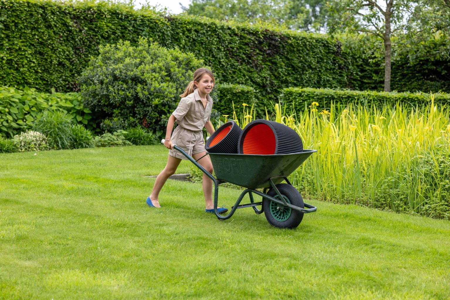 A kaspó élénk narancssárga belseje a holland eredetre utal, és többet nyújt egy egyszerű esztétikai elemnél: a beépített szigetelőréteg megbízhatóan védi a növényeket a téli fagytól és a nyári hőségtől.