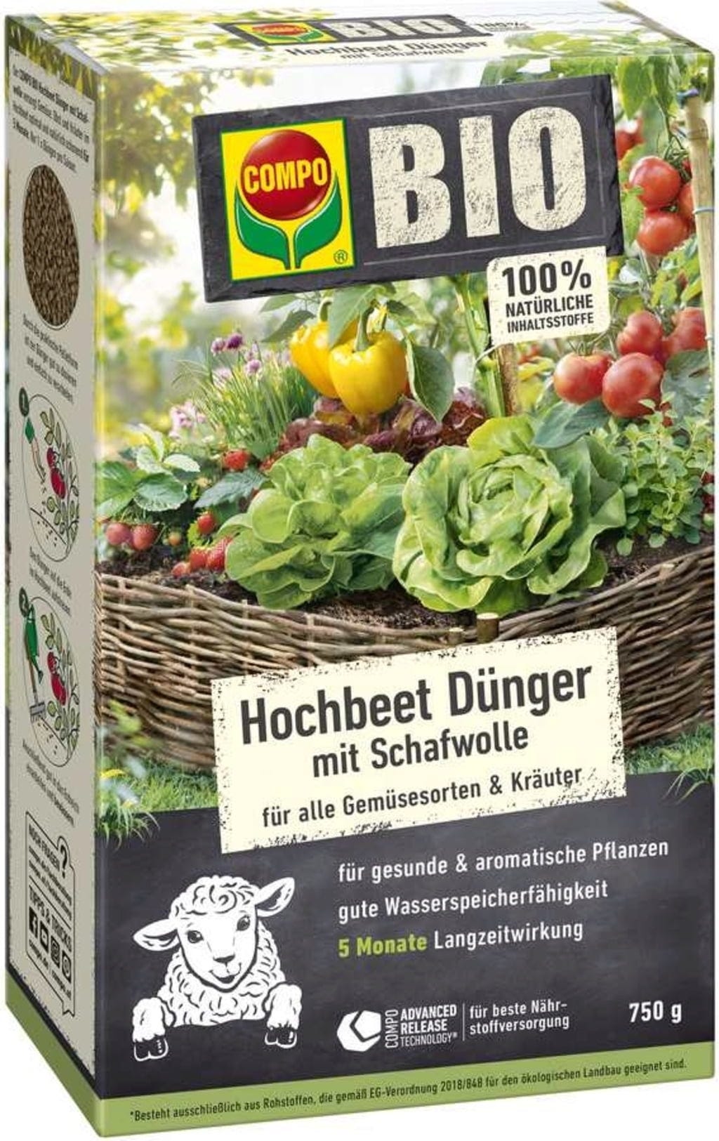 A Compo juhgyapjút tartalmazó bio magaságyás trágyája kifejezetten a magaságyásban lévő összes növényhez lett kifejlesztve. A természetes juhgyapjúnak köszönhetően a trágyapelletek több hónapon keresztül bocsátják ki a tápanyagokat, és ezzel egyidejűleg lazítják a talajt. Így a növények erősebbek lesznek, a termés bőségesebbé válhat, a talajélet pedig serken – mindezt többszöri trágyázás nélkül.