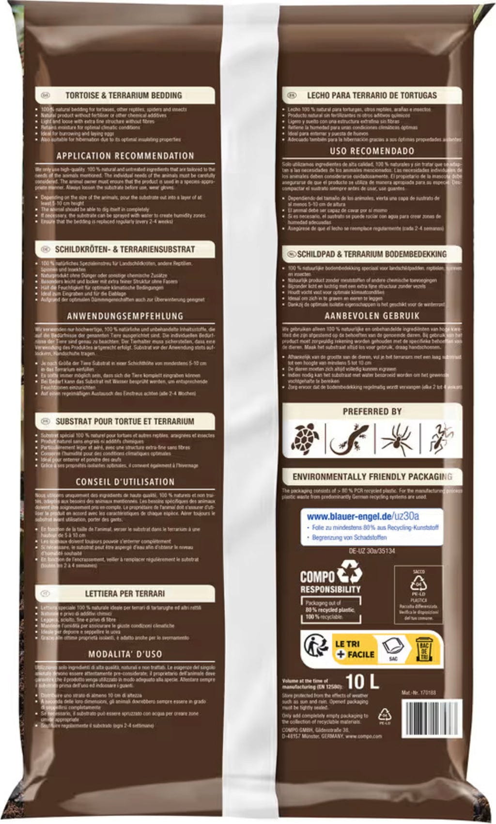 A COMPO teknős- és terráriumaljzata kellemes mikroklímát teremt a terráriumi állatok számára, és támogatja természetes viselkedésüket. A finom, laza szerkezet lehetővé teszi a kényelmes beásást, és ideális a tojásrakáshoz. Egyúttal a szubsztrátum optimális nedvességet és stabil éghajlati feltételeket biztosít – az áttelelés során is.