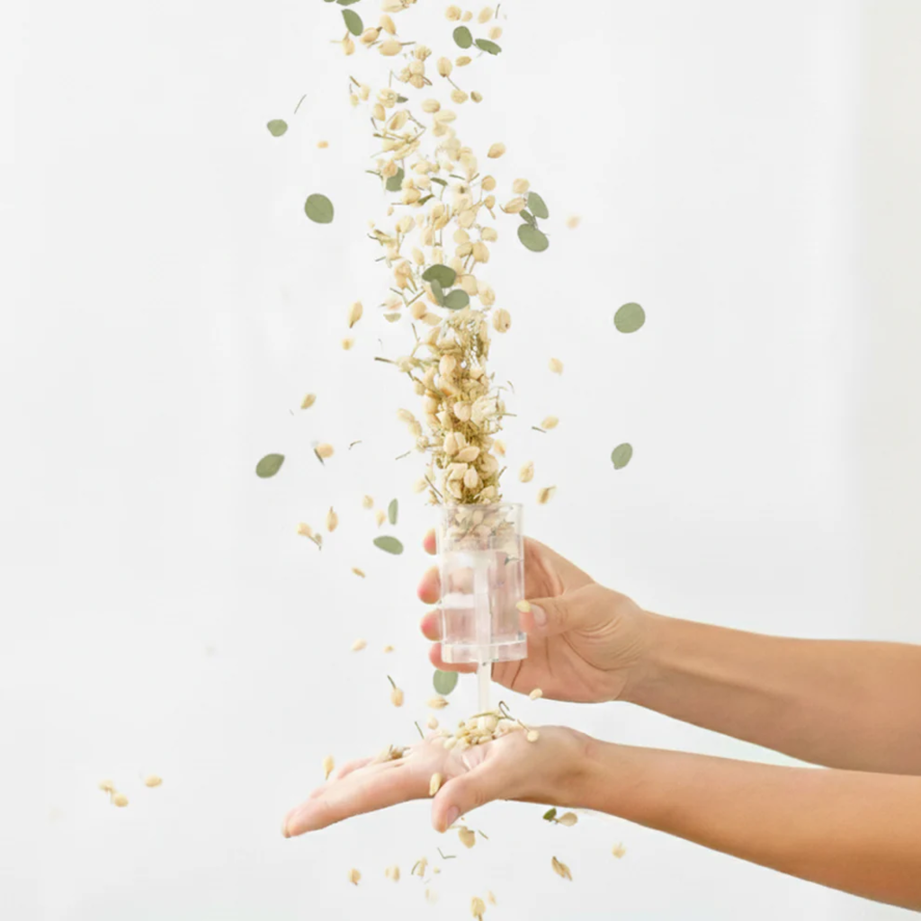 Alkalmazás: Helyezze be a szárat, üsse meg határozottan alulról – és máris száll a levegőben a fenntartható virág konfetti.