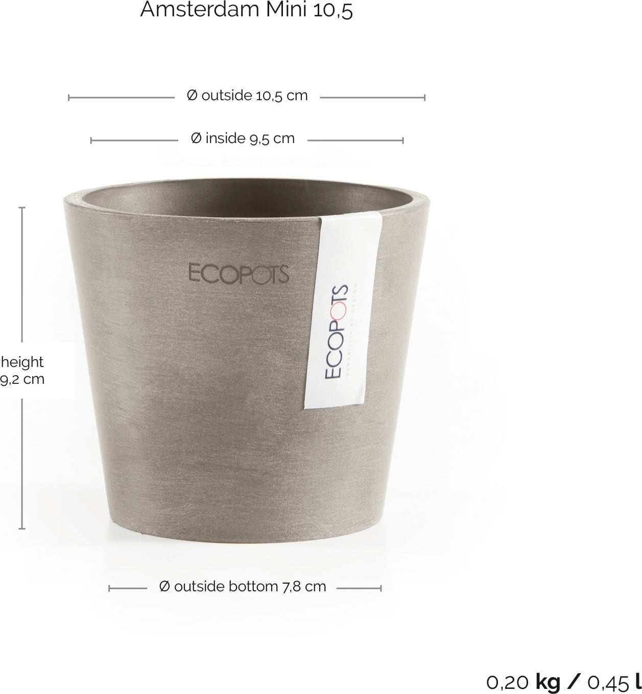 Ecopots Amsterdam kaspó - taupe, Ø 10,5 cm, magasság 9,2 cm