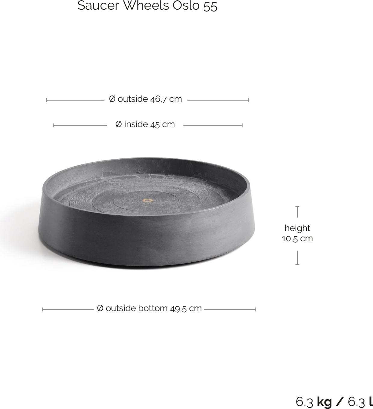 Ecopots Wheels Oslo alátét - szürke, ∅ 45,40, magasság 10,5 cm