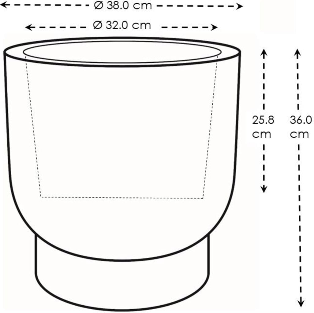Belsejében, a magasított talpon jelölések találhatók, amelyekbe lyukakat lehet fúrni, hogy a felesleges víz elfolyhasson, ha a virágtartót a szabadban helyezik el. Ez megakadályozhatja a gyökérrothadást. Kérjük, vegye figyelembe, hogy ebben az esetben már nem lehet beltérben használni.