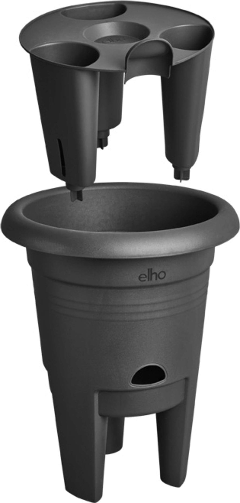 Az oldalsó nyíláson keresztül kényelmesen öntözheted a növényeket. A tárolt vizet a cserép fokozatosan adja le a növényeknek. A magas építésmód ráadásul távol tartja a szamócákat a talajtól, így akadálytalanul fejlődhetnek. Amikor az ágak megtelnek gyümölccsel, a széles perem extra kényelmet és biztos tartást nyújt. Ideális körülmények egy bogyós gyümölcsökben gazdag nyárhoz.
