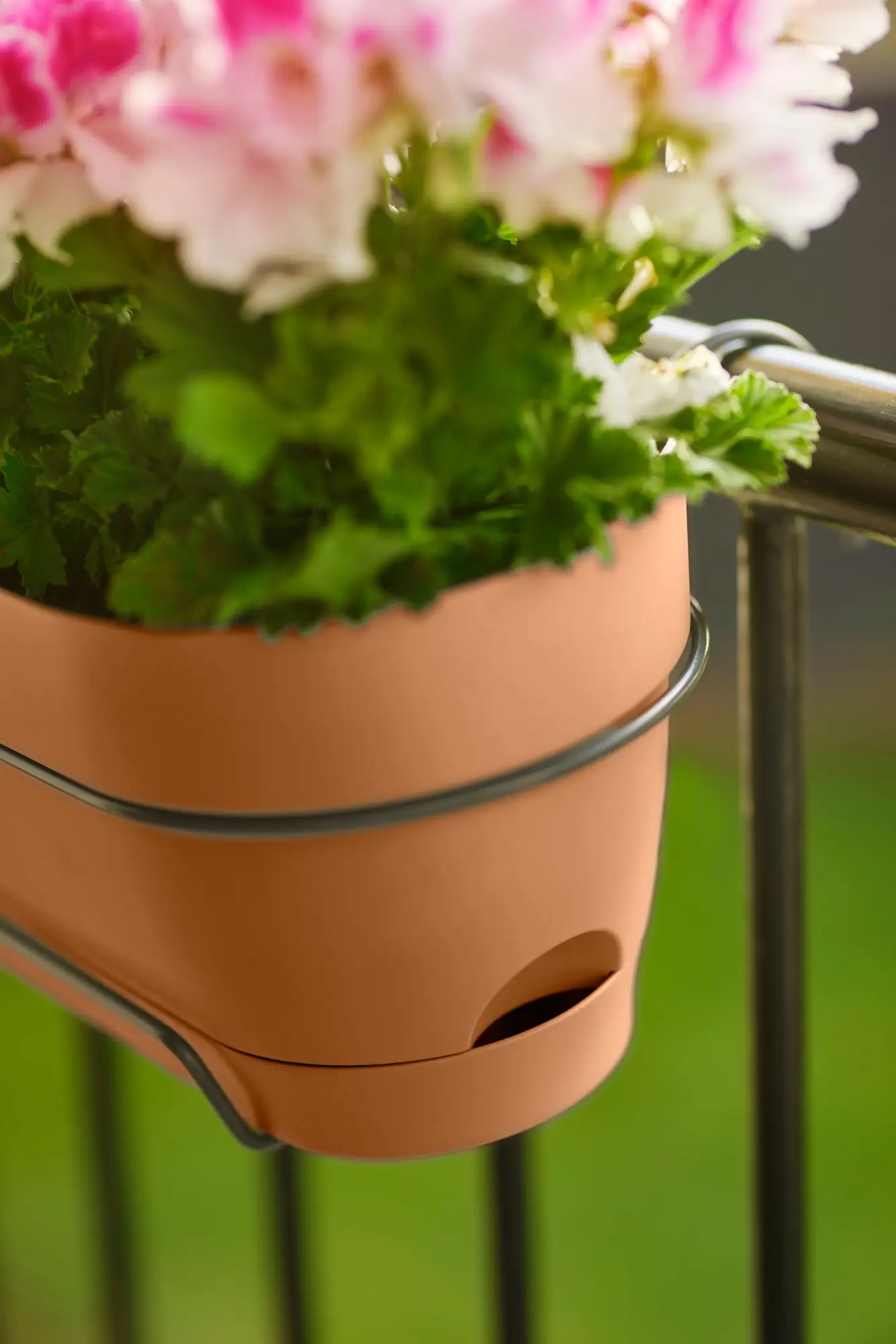 Ezzel a fenntartható gyártású, trendi színekben pompázó balkonládával modern módon zöldítheti az erkélykorlátokat, kerítéseket és ablakpárkányokat. Otthonát egyedi módon varázsolhatja zöld oázissá. Akár külön-külön, akár a vibia sorozat többi virágtartójával kombinálva, ez a balkonláda mindig szép látványt nyújt. A beépített víztartálynak köszönhetően mindig elegendő vízzel látja el növényeit.