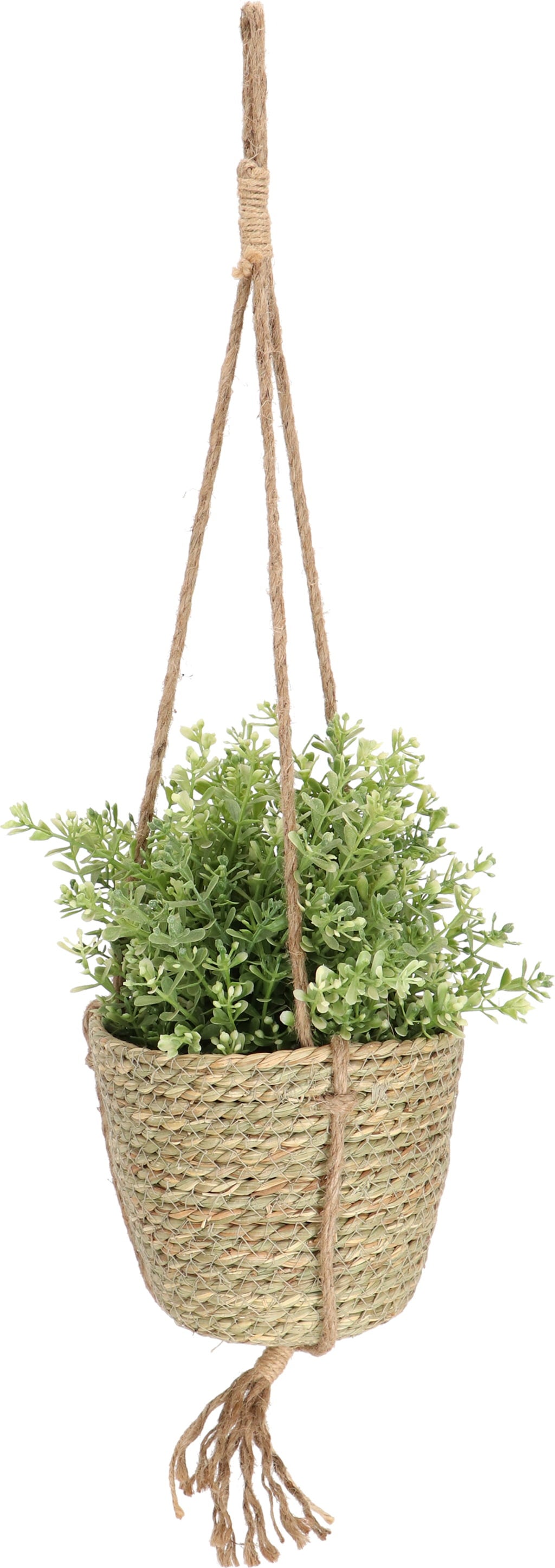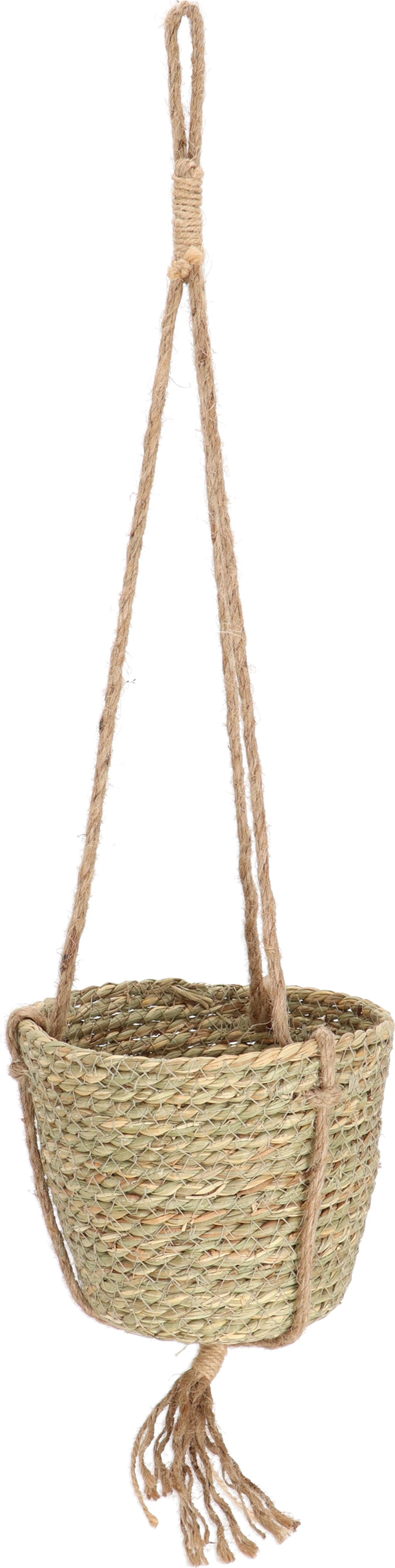 Ez a kézzel készített függőkosár ideális megoldás növények dekoratív beltéri kiállítására. A természetes anyag meleg megjelenést kölcsönöz, és harmonikusan illeszkedik a különféle belső stílusokhoz.