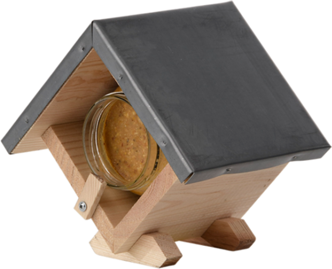 Csalogassa be a madarakat a kertbe ezzel a praktikus és masszív mogyoróvajas házikóval. A cink tető megvédi az ételt az időjárási elemektől, míg a zár minden típusú mogyoróvajas üveghez illeszkedik. FSC® minősítésű fenyőfából készült – fenntartható és tartós.