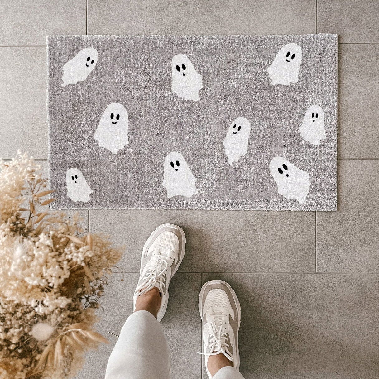 Micsoda kísérteties fogadtatás a barátok és vendégek számára! A mosógépben mosható lábtörlő az aranyos kis szellemekkel csodálatos látványt nyújt az őszi szezonban. A kiváló minőségű poliamidszál különösen kellemessé és puhává teszi a terméket, a csúszásgátló PVC-hátlap pedig biztos tapadást biztosít.