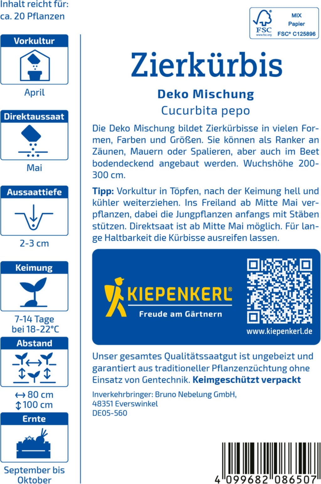Nevelje fel a jövő őszi díszeit a kertjében! Ez a keverék magokat tartalmaz, amelyekből változatos formájú, színű és méretű dísztököket teremhet. Te dönti el, hogy kúszónövényként szeretné-e őket kerítésen, falon vagy spirálban nevelni, vagy talajtakaróként ágyásokban. Számoljon úgy, hogy 200-300 cm magasra nőnek meg.