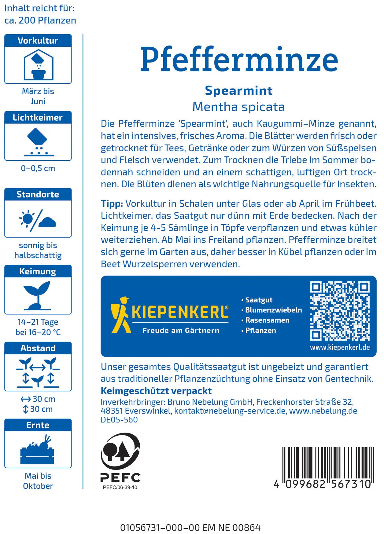 A „Spearmint” fodormenta, más néven rágógumi menta, intenzív, friss aromájával hódít. Ideális teákhoz, italokhoz, édességekhez vagy húsételekhez, így friss fűszernövényt kínál közvetlenül a saját kertjéből. Virágai ezenkívül táplálékot nyújtanak a rovaroknak, és hozzájárulnak a biológiai sokféleséghez.