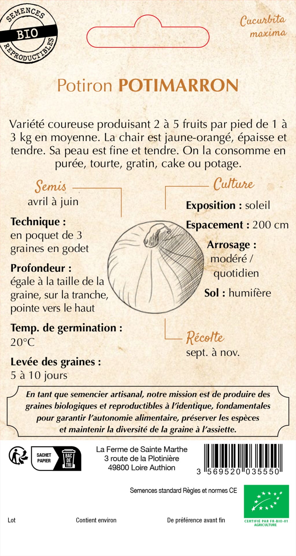 La Ferme de Sainte Marthe "Potimarron" sütőtök