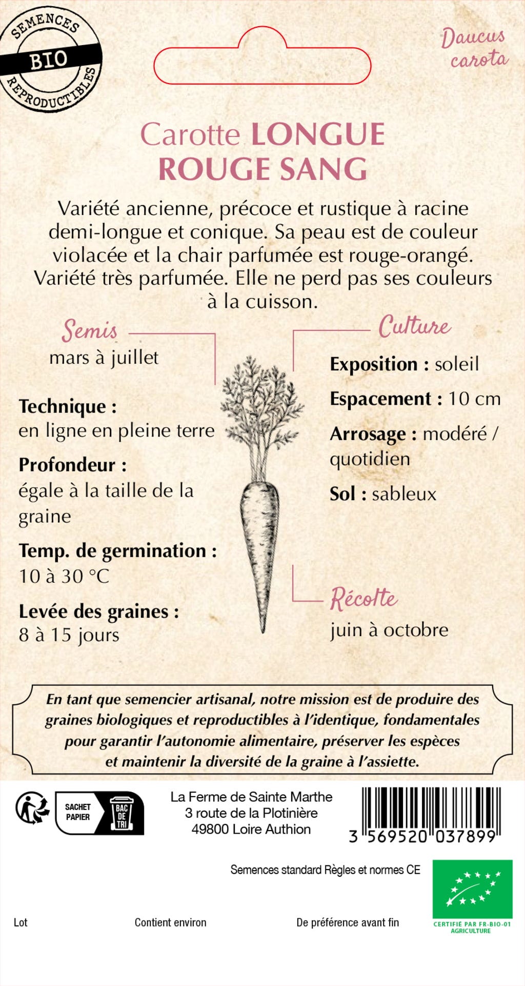 La Ferme de Sainte Marthe Sárgarépa "Longue Rouge Sang"