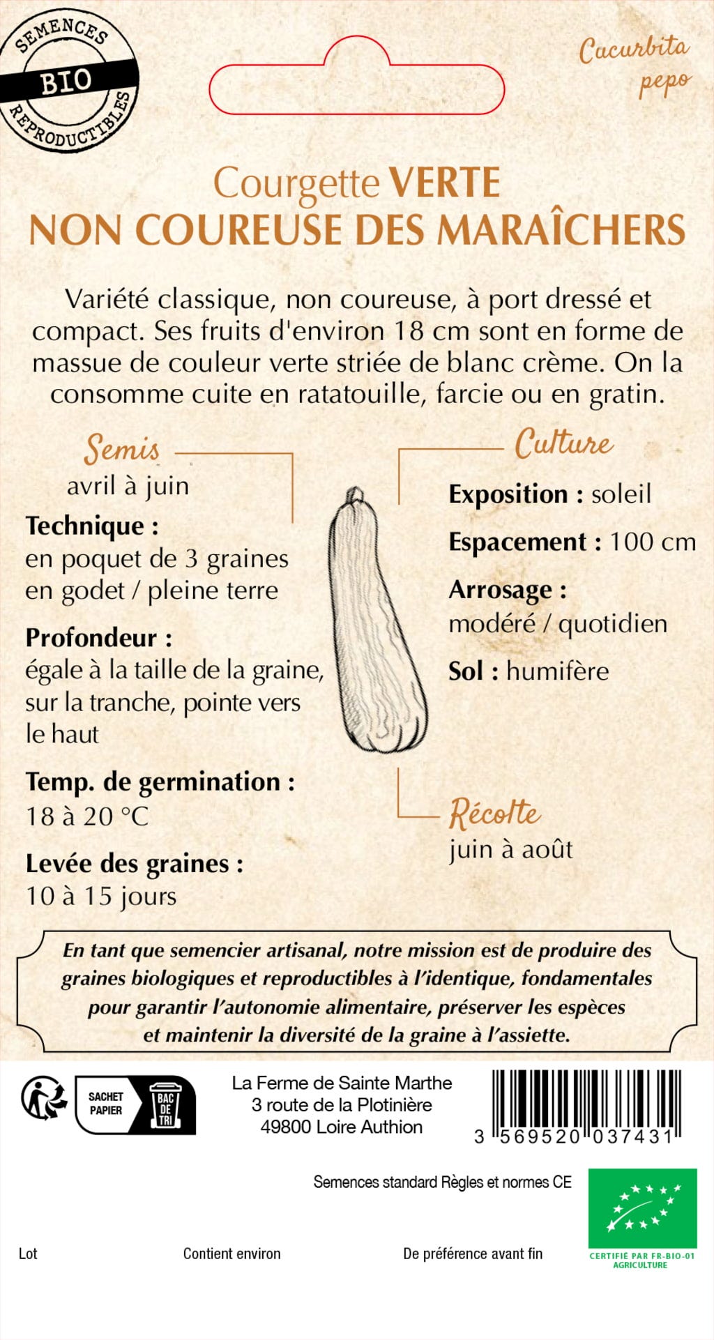 La Ferme de Sainte Marthe Zucchini "Verte Non Coureuse des Maraîchers"
