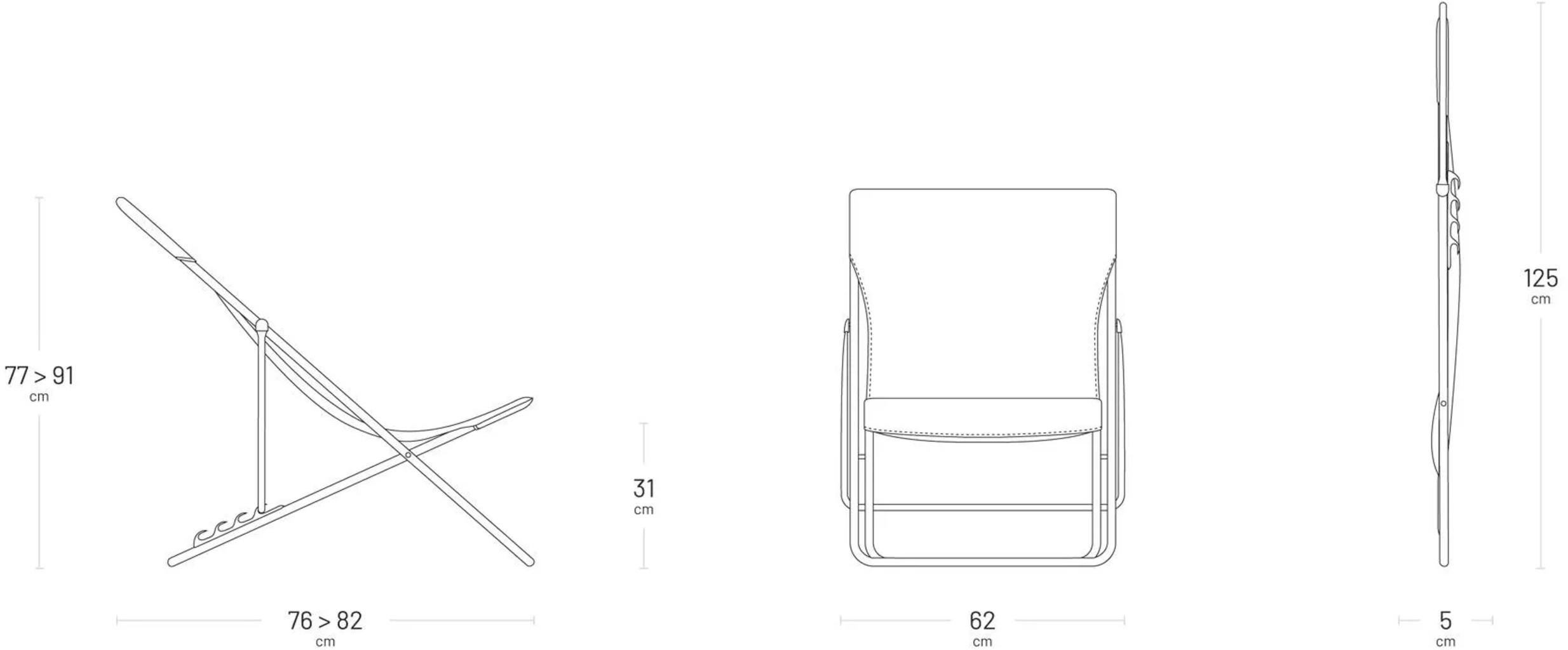 Extra szélességű pihenőszék: a szélesebb vállúak számára 62 cm hely áll rendelkezésre a vázon belül. A huzat lélegző anyagú és kényelmesen levehető. A szövet a térd alatt megerősített, így a keresztrúd nem zavarja a kényelmet. A pihenőszék összecsukható, mindössze 6 cm tárolóhelyet igényel, azaz helytakarékos tárolást biztosít. A szék 4 pozícióba állítható, ami pedig maximális rugalmasságot és kényelmet nyújt