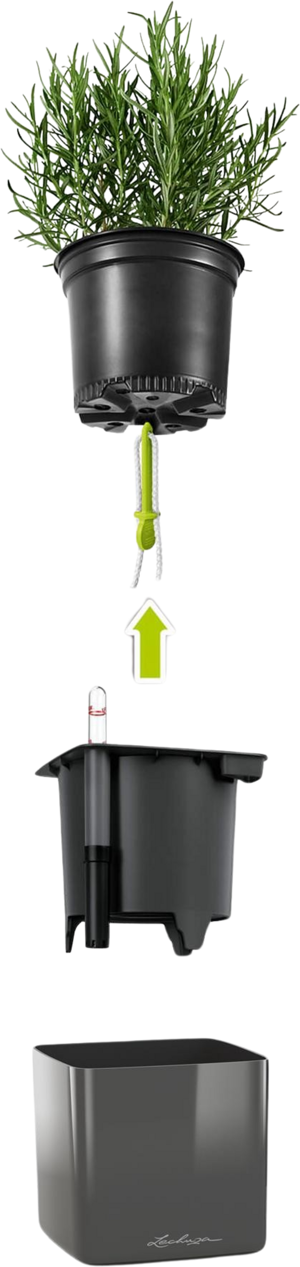 Annak érdekében, hogy a növények gondozása ne vegyen igénybe túl sok időt, a Lechuza öntözőrendszer gondoskodik a növények igényeiről. A Glossy kollekció virágtartói lehetővé teszik a növények egyszerű cserépbe helyezését, átültetési gondok nélkül. A cserép aljába szúrt stick egyenletesen elosztja a nedvességet a gyökerekhez. A vízszintjelző segítségével ellenőrizheti, mikor kell újra öntözni.