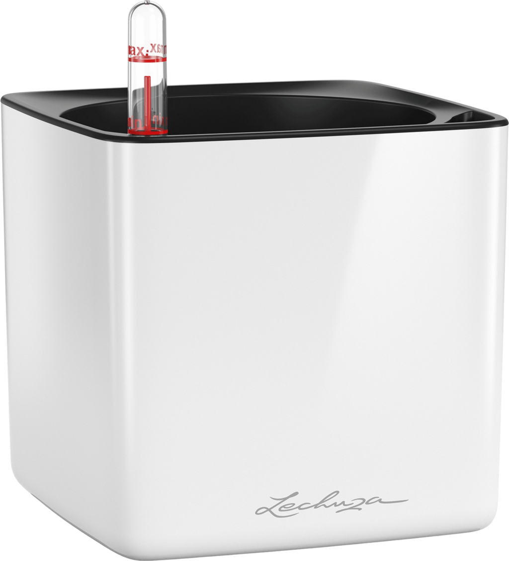 Lechuza CUBE Glossy 14 asztali virágtartó, Fehér magasfényű