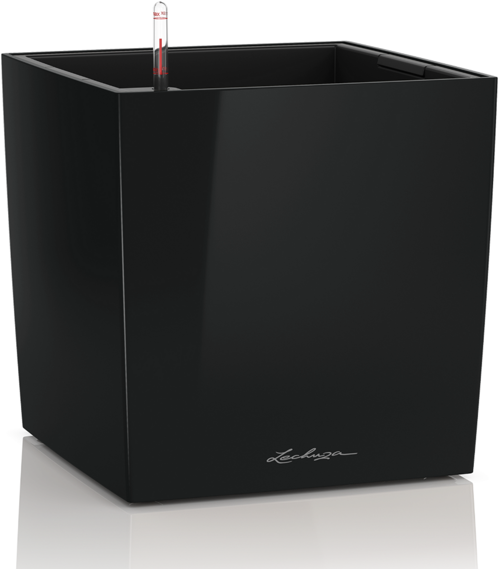 Lechuza CUBE Premium 30 virágtartó, Fekete magasfényű