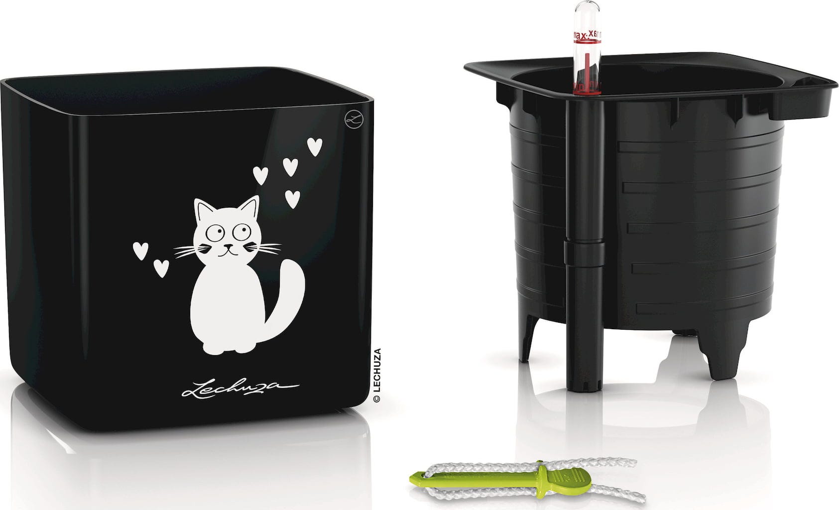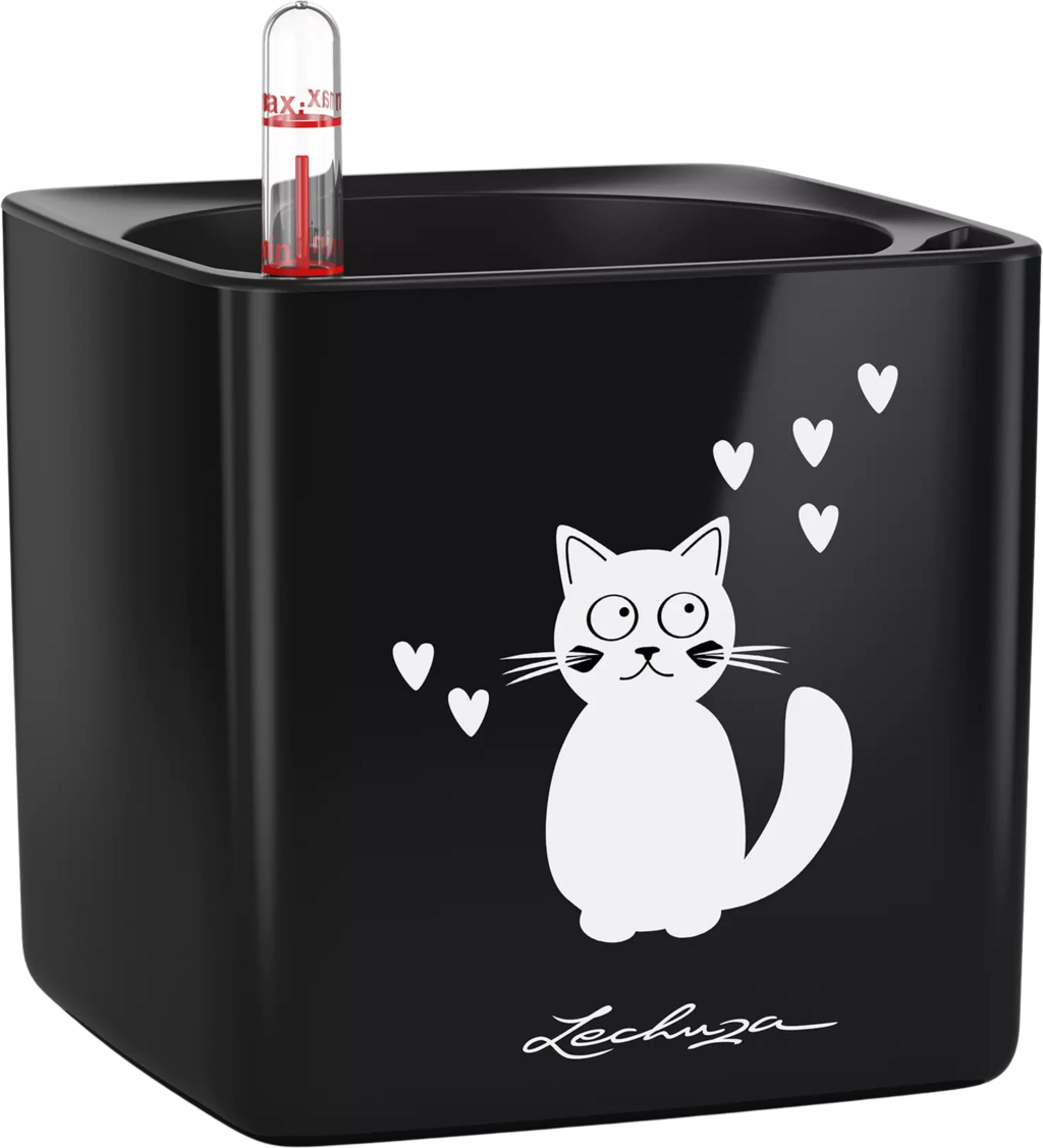 Lechuza CUBE Premium CAT 14 asztali virágtartó, Fekete magasfényű