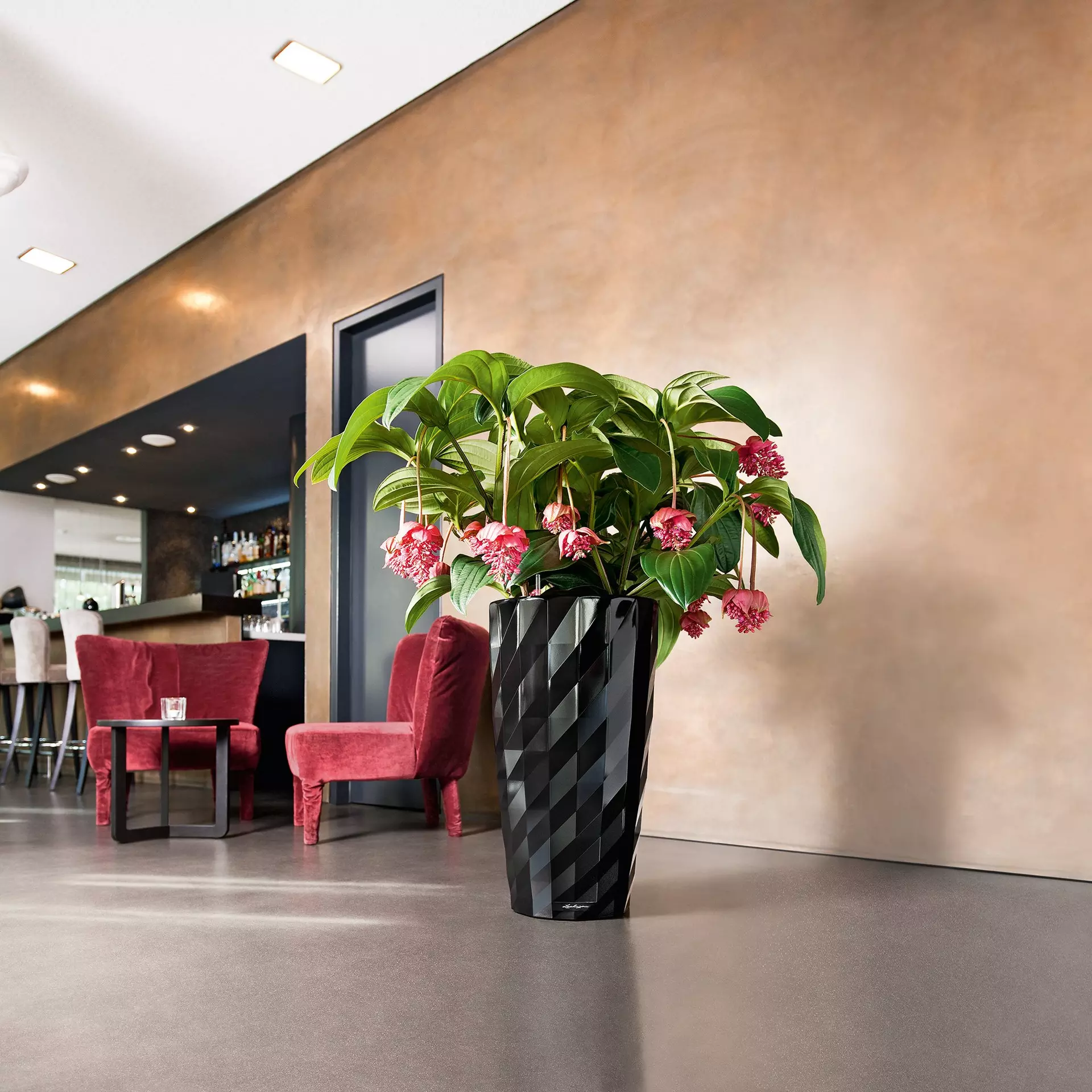A rendkívüli Diamante Premium növénytartó nemcsak elegáns, csiszolt gyémántra emlékeztető kialakításával, hanem okos belső működésével is lenyűgöz. A kivehető ültetőbetét a Lechuza szabadalmaztatott öntözőrendszerével gyorsan és egyszerűen teszi lehetővé a növények cseréjét.