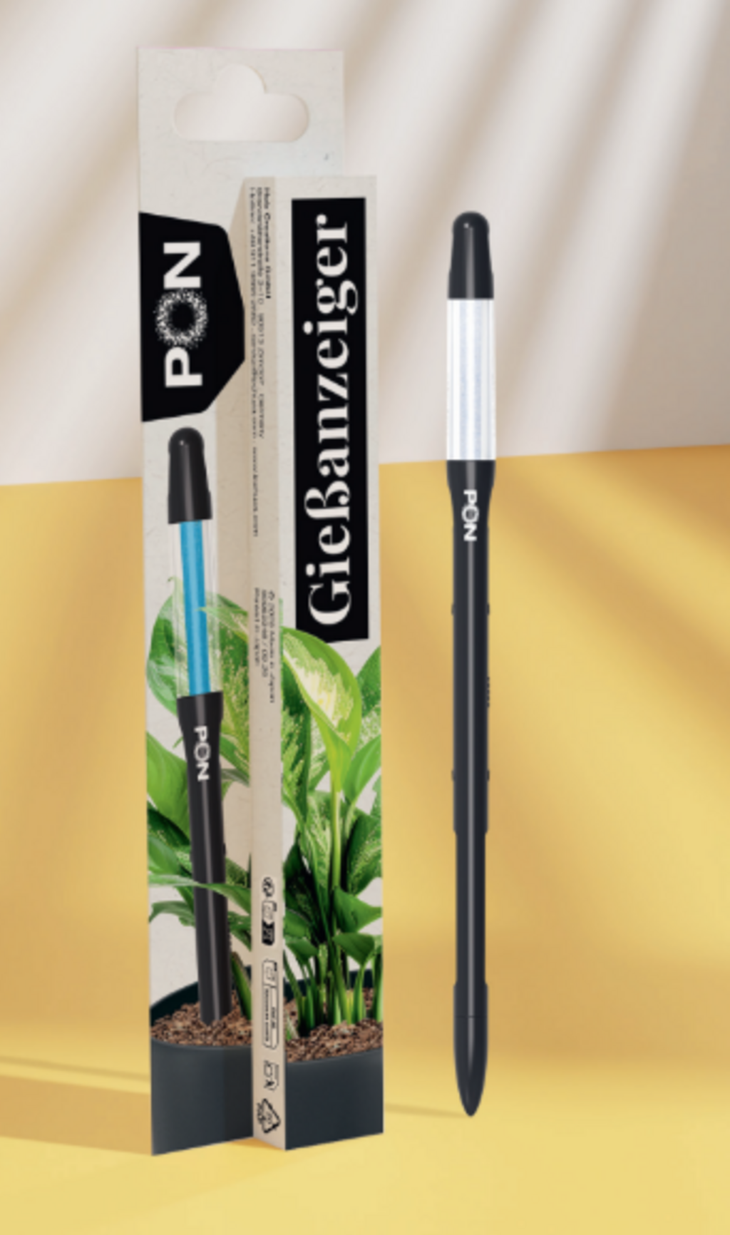 - Könnyen használható és leolvasható: Egyszerűen helyezze a talajba, és figyelje a színt (fehér = száraz / kék = nedves)