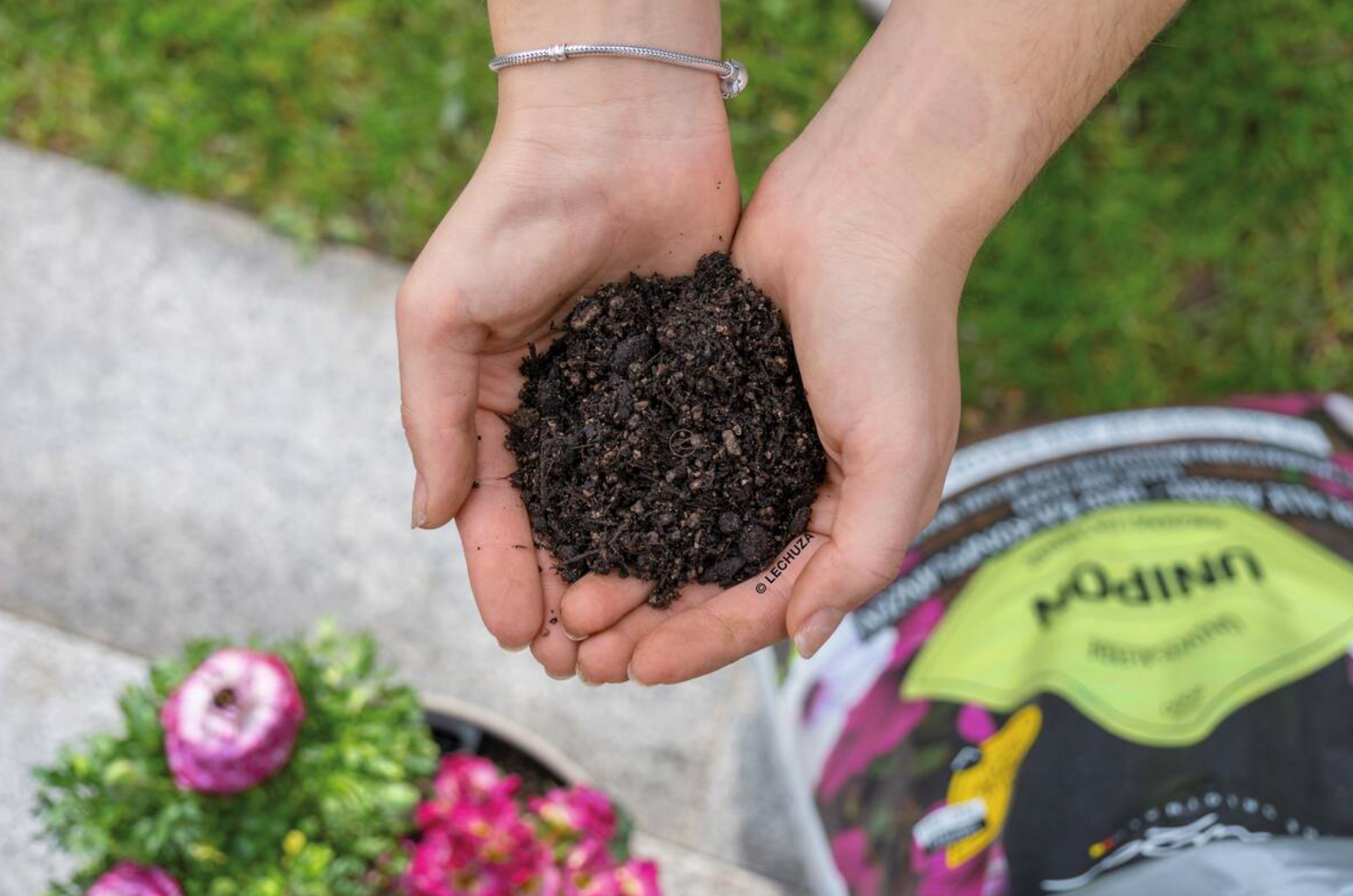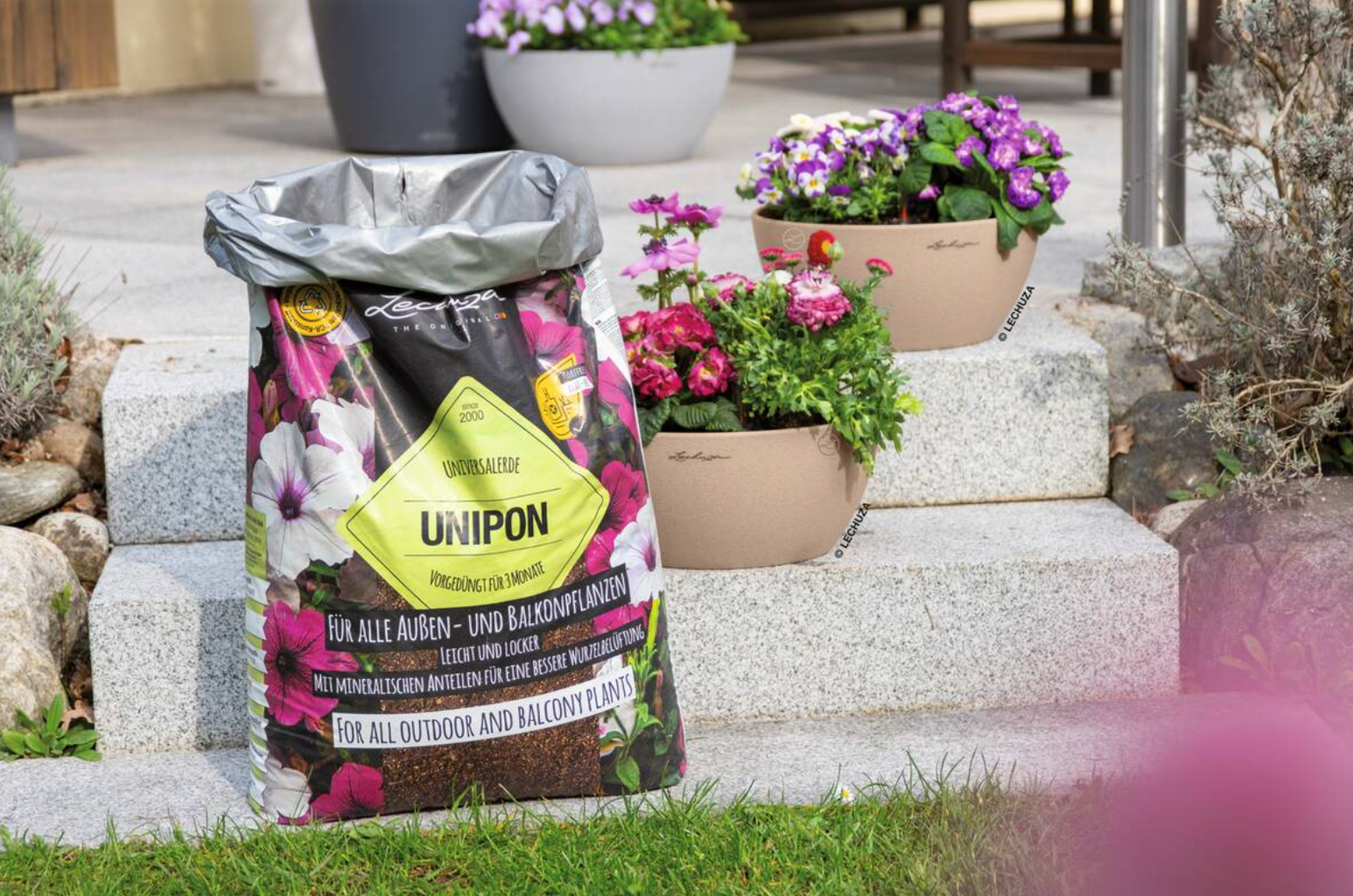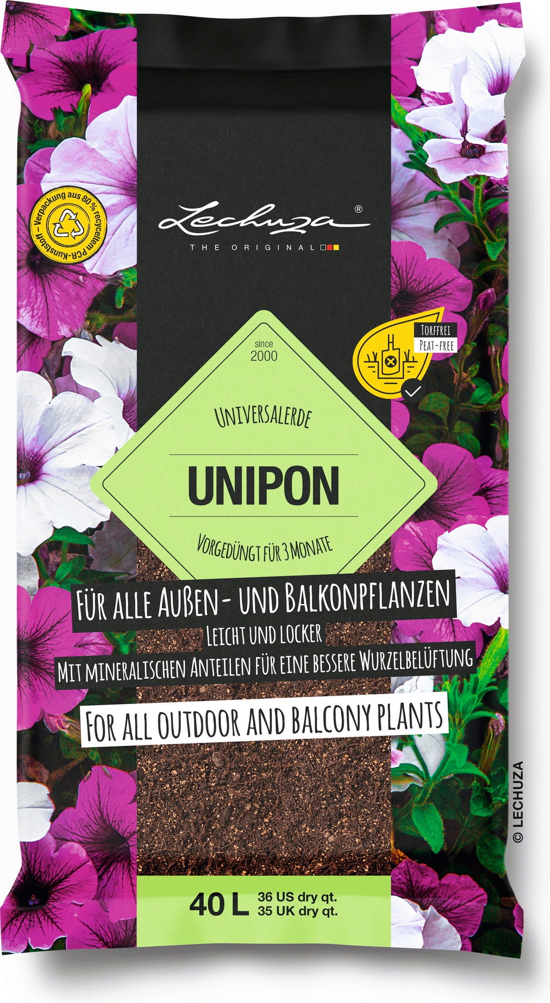 - Tőzegmentes univerzális virágföld virágzó növényekhez, cserjékhez és egyéb kültéri növényekhez