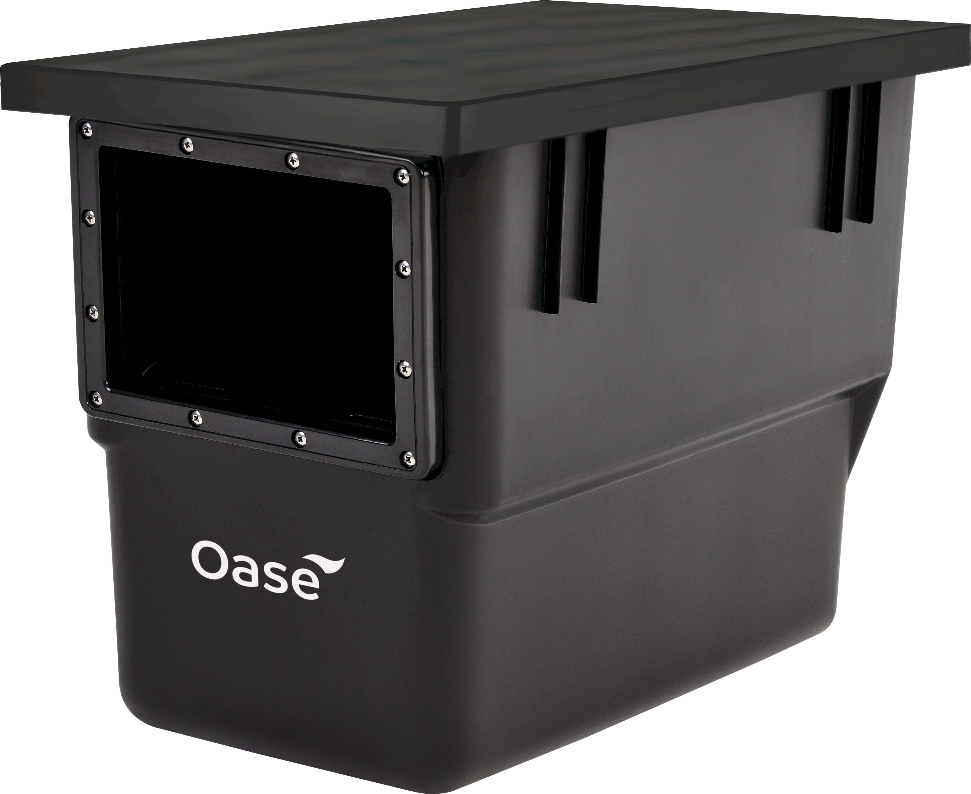 Nagy előnyt jelent a beépített szivattyúkamra, amelyben diszkréten elhelyezhető egy opcionálisan beszerezhető AquaMax Eco szűrőszivattyú a rendszer meghajtásához. Annak érdekében, hogy a tó tájképe megőrizze természetes megjelenését, a csomag már tartalmaz egy megtévesztően valódi, szikla megjelenésű fedelet. Az intelligens konstrukciónak köszönhetően a készülék önállóan alkalmazkodik az akár 100 mm-es vízszintingadozásokhoz, így az elszívási teljesítmény változó vízszint mellett is állandó marad.