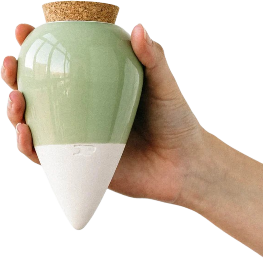 Az Olla nem csupán dekoratív, hanem sokkal inkább praktikus kiegészítő szobanövényei számára. Az agyagkúp szabályozza a vízáramlást, és éjjel-nappal nedvességgel látja el a növényt.