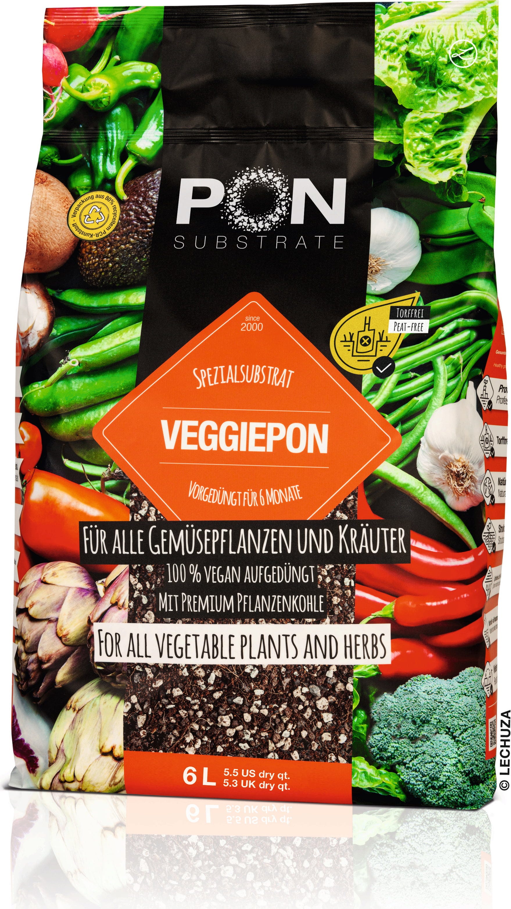 A Veggiepon egyesíti a funkcionalitást az ökológiai igényekkel. A szerves-ásványi szubsztrát kiváló vízelvezetést garantál és megakadályozza a gyökérrothadást, még akkor is, ha nyáron erősebben esik az eső. A már benne lévő vegán, hosszú távú műtrágyának köszönhetően növényei a kezdetektől fogva a lehető legjobb ellátást kapják.