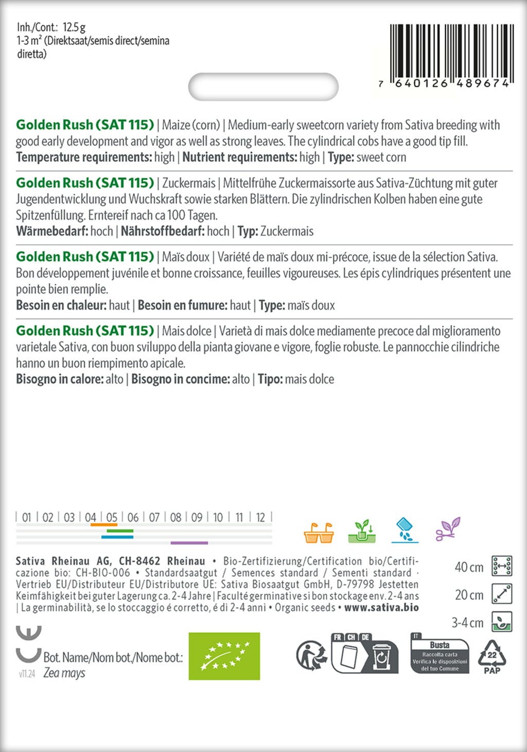 Ez a középkorai csemegekukorica erős növekedésével és robusztus leveleivel nyűgöz le. A hengeres kukoricacsövek jól kitöltik a csúcsot, és körülbelül 100 nap után betakaríthatóak. Ideális bő termés eléréséhez a házikertben.