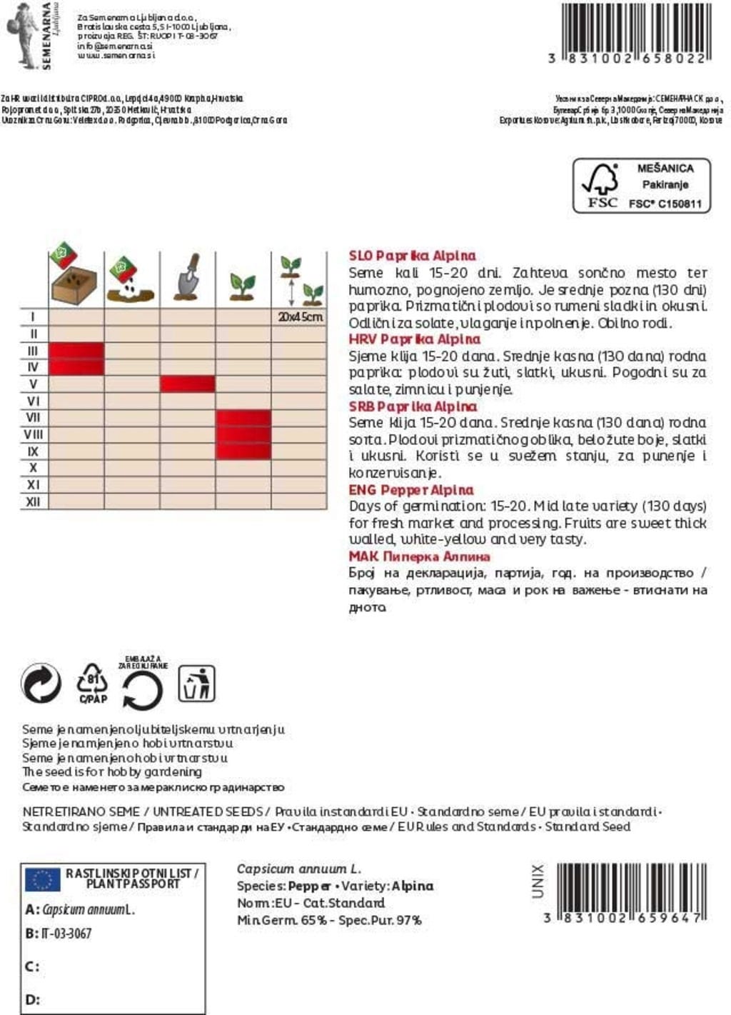 | Gyártó: | Semenarna Ljubljana d.o.o., Bratislavska Cesta 5, 1000, Ljubljana, Szlovénia, info@semenarna.si, www.semenarna.si |
