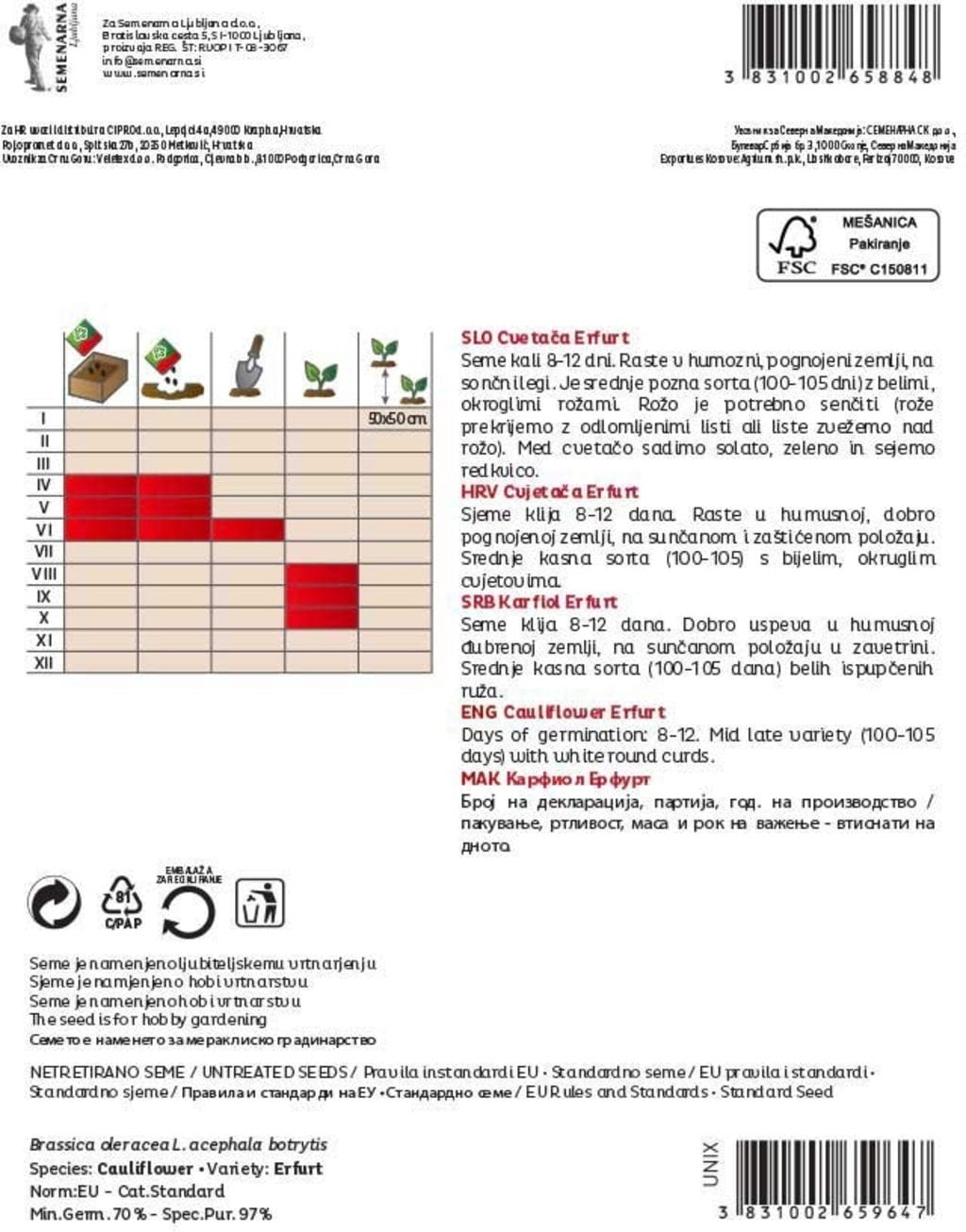 Semenarna Ljubljana "Erfurt" karfiol vetőmag, 2,50 g 560 Ft (224.000 Ft / kg)