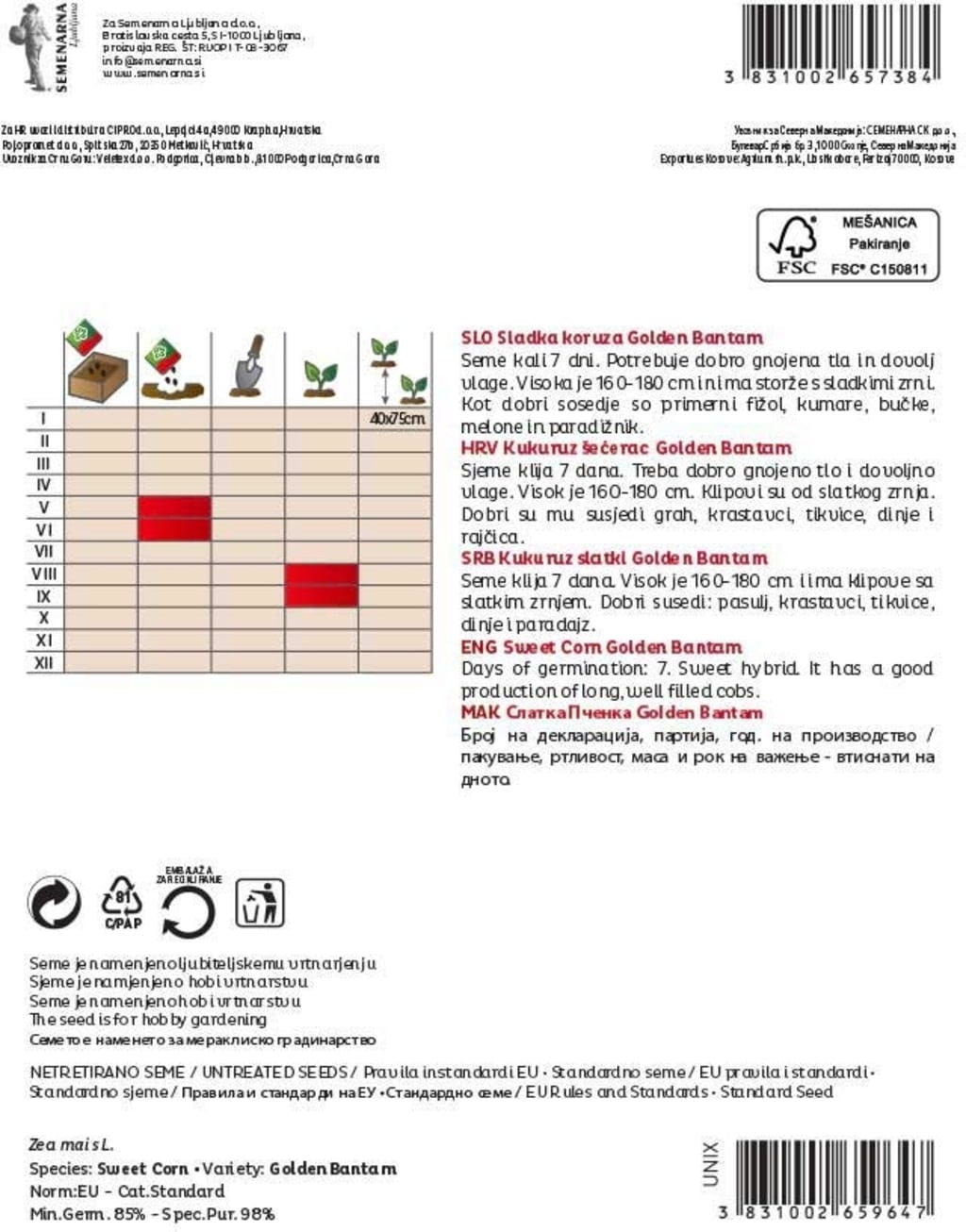 Semenarna Ljubljana "Golden Bantam" csemegekukorica vetőmag, 8 g