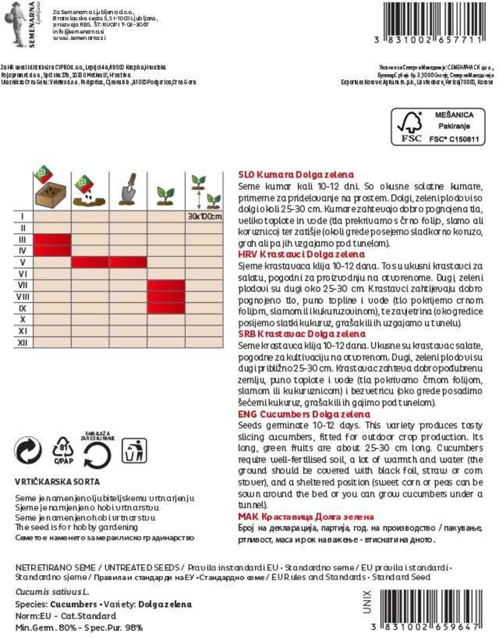 Semenarna Ljubljana Kígyóuborka vetőmag "Lange Grüne", 3 g