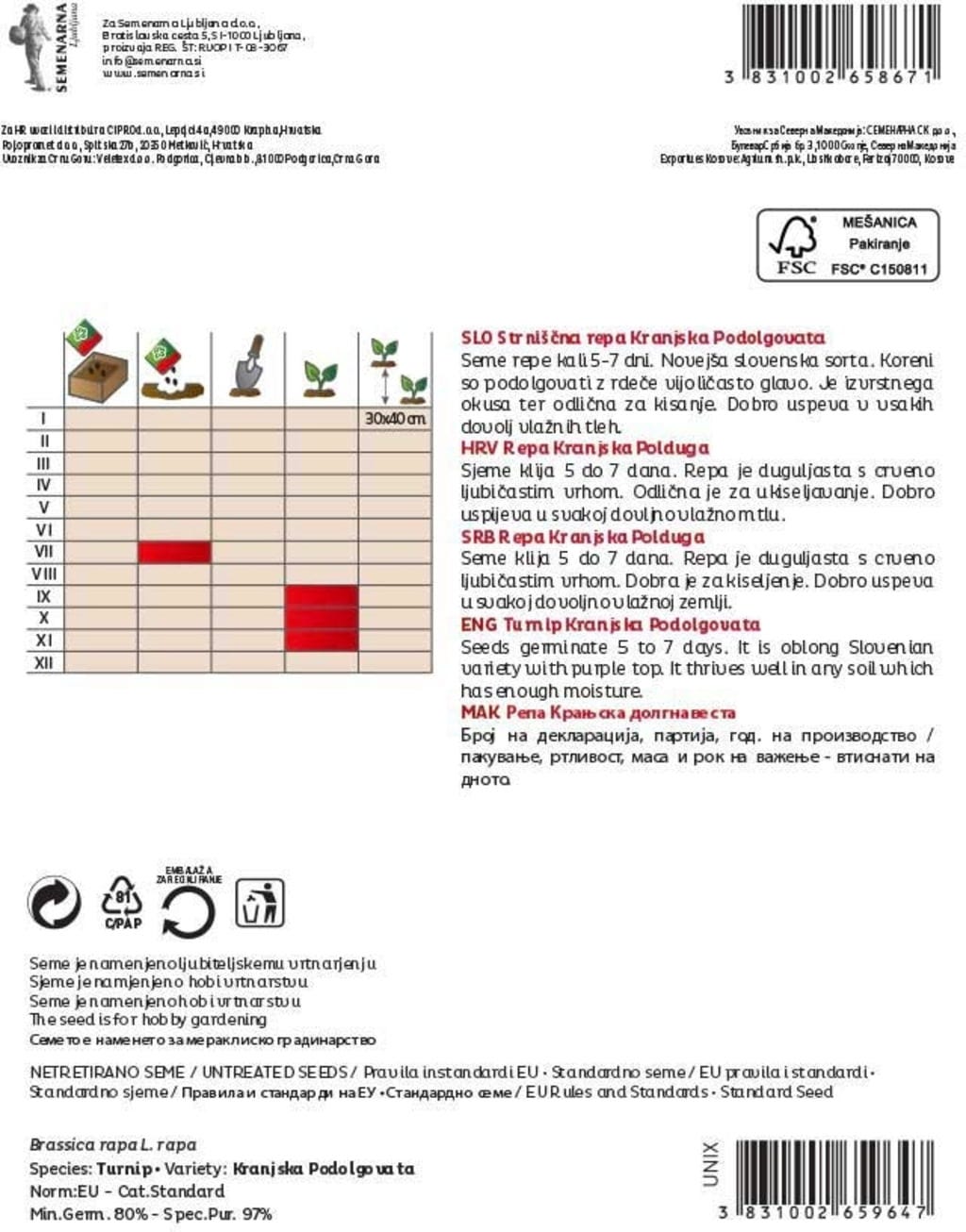 | Gyártó: | Semenarna Ljubljana d.o.o., Bratislavska Cesta 5, 1000, Ljubljana, Szlovénia, info@semenarna.si, www.semenarna.si |