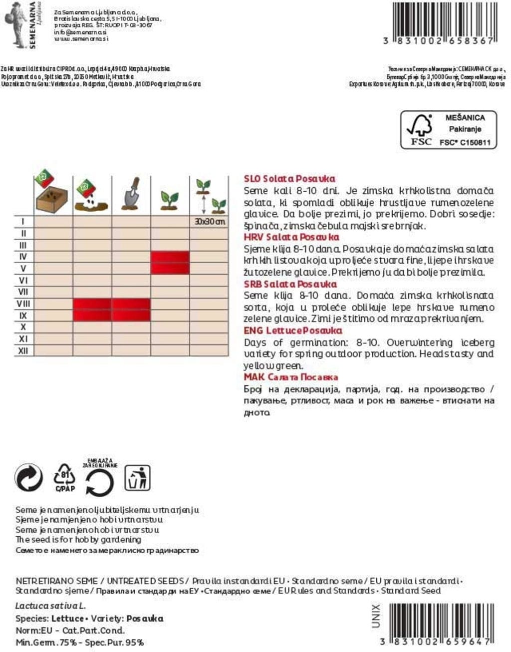 | Gyártó: | Semenarna Ljubljana d.o.o., Bratislavska Cesta 5, 1000, Ljubljana, Szlovénia, info@semenarna.si, www.semenarna.si |