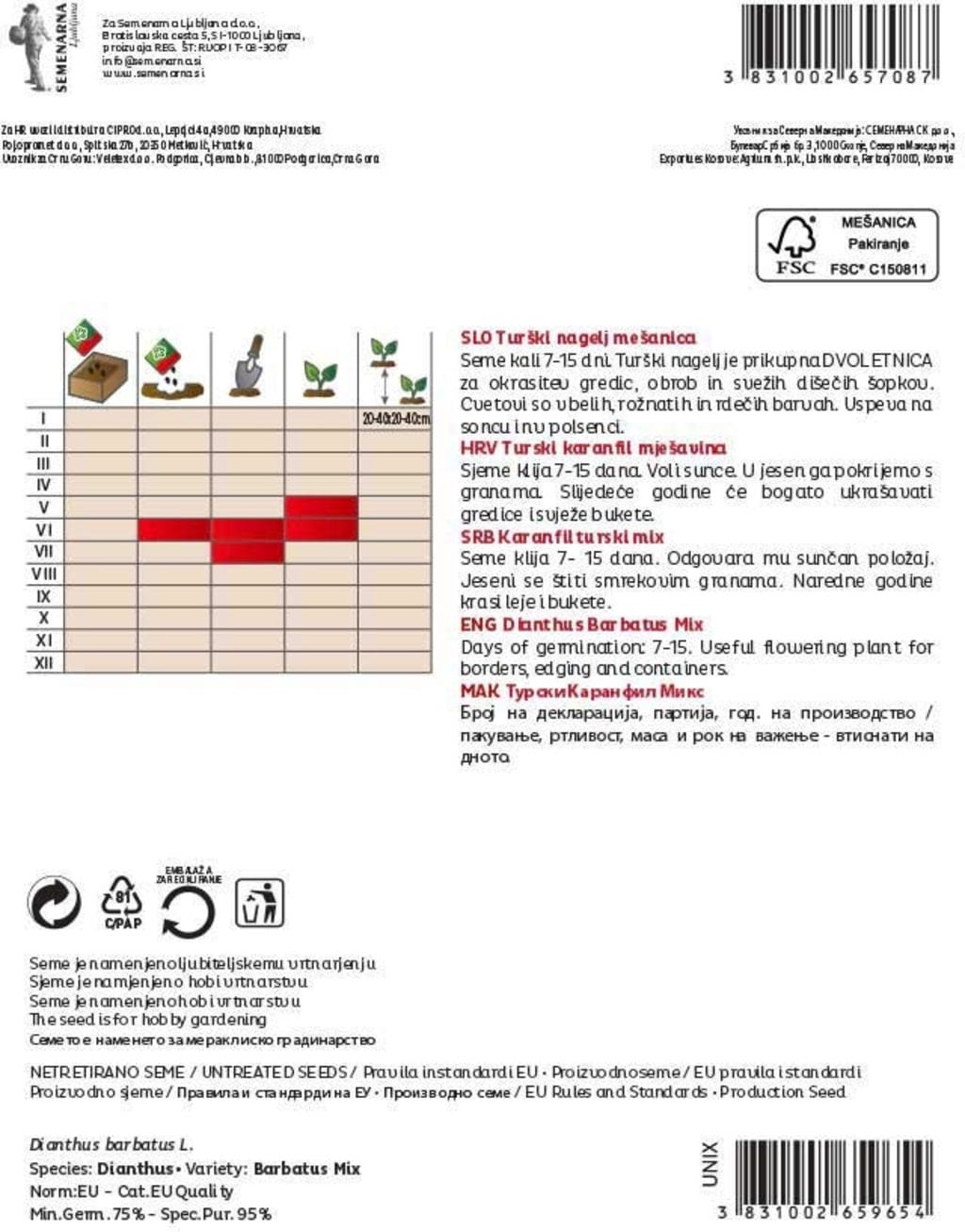 Semenarna Ljubljana Török szegfű vetőmag keverék, 1 g