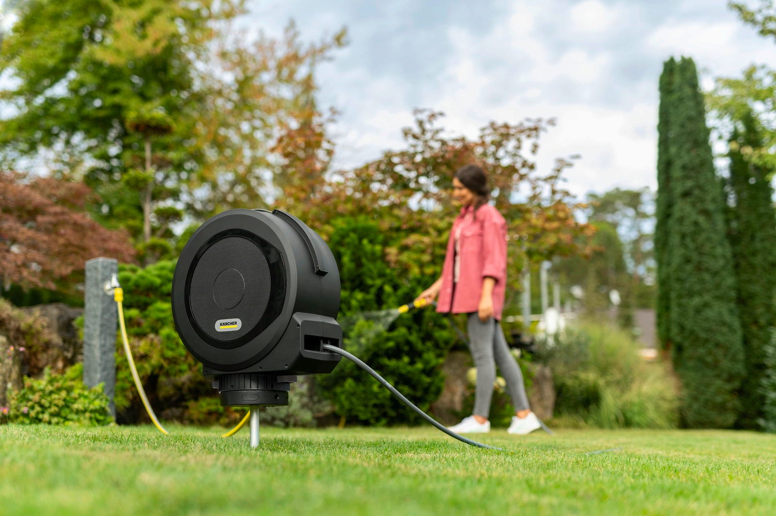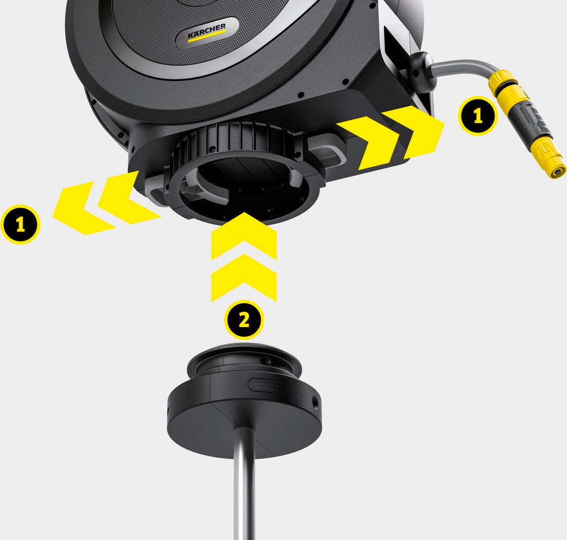 Egy Kärcher tömlődobbal kombinálva különösen rugalmas tömlőrendszer hozható létre a kertben. A felszerelt dob 360°-ban elforgatható, így az öntözés során a tömlő szabadon vezethető. Ez csökkenti a tömlő megtörését, és megkönnyíti a kerti öntözéshez használt tömlődob használatát az ágyások, gyepfelületek vagy növények körül. A FlexChange-technológiának köszönhetően a tömlődob szerszám nélkül a leszúrható tüskére helyezhető vagy onnan eltávolítható. Így a kerti tömlődob pontosan ott használható, ahol vízre van szükség.