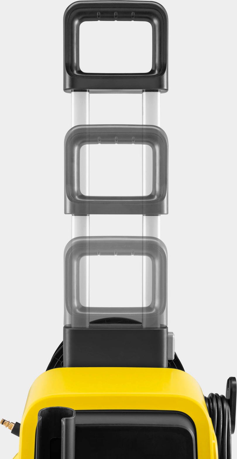 A beépített tömlődob a 10 m hosszú PremiumFlex tömlővel magas kezelési kényelmet és nagy mozgásszabadságot kínál. A Quick Connect rendszernek köszönhetően a tömlő gyorsan csatlakoztatható, míg az ergonomikus G 180 Q COMFORT!Hold™ pisztoly érezhetően megkönnyíti a hosszabb ideig tartó munkavégzést. A 4-in-1 Multi Jet szórószár lehetővé teszi a sugárkép rugalmas beállítását fúvókacsere nélkül. További támogatást nyújt a Kärcher Home & Garden App praktikus alkalmazási tippekkel - a ház körüli optimális tisztítási eredmények eléréséhez.