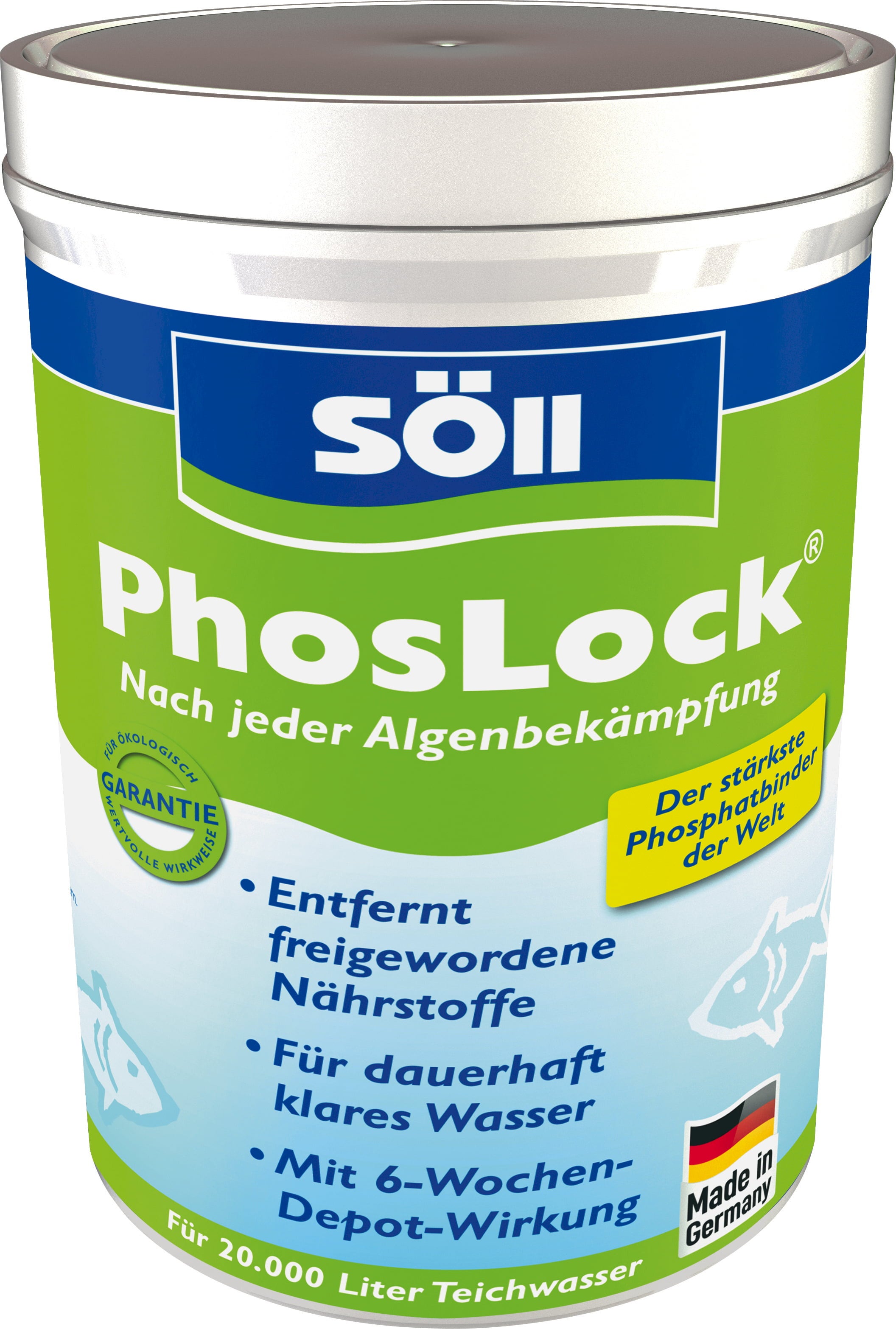 A Söll PhosLock a világ egyik legerősebb foszfát megkötője. Ásványi összetétele nem tartalmaz nehézfémeket, helyesen használva és adagolva ártalmatlan a halakra, a növényekre és a tó egyéb lakóira. A PhosLock megakadályozza a tóiszapban lévő tápanyagok lebomlását azáltal, hogy megköti a foszfátot, amely egy vízben nem oldódó ásványi anyag.
