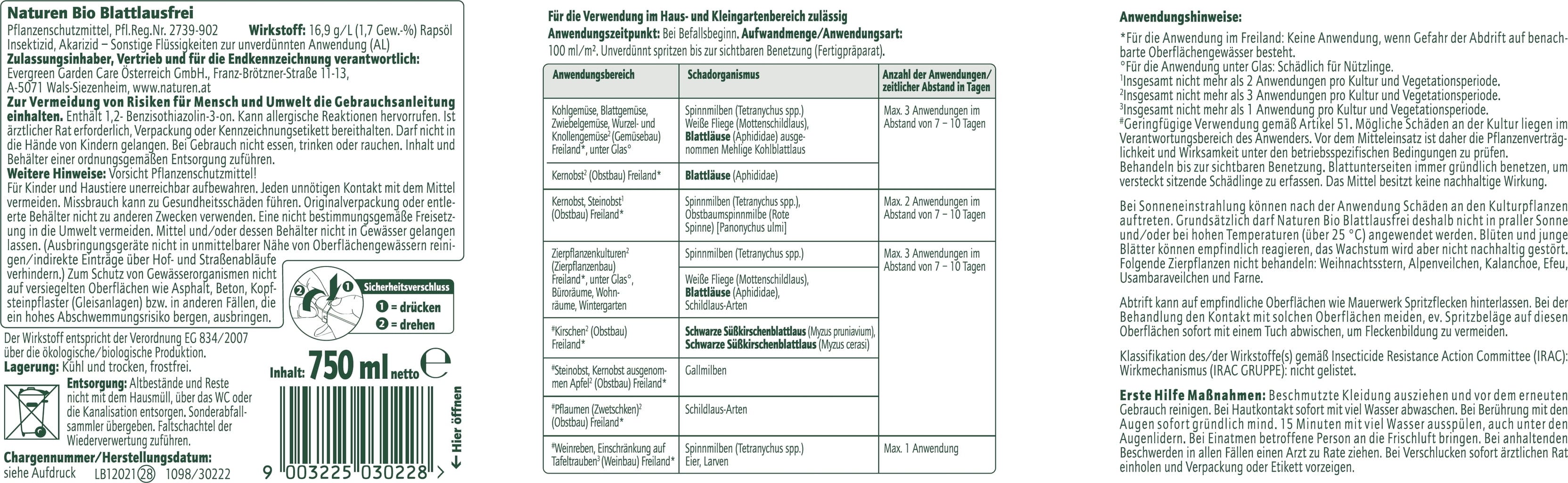 Kereskedelmi megnevezés: Naturen Bio Blattlausfrei