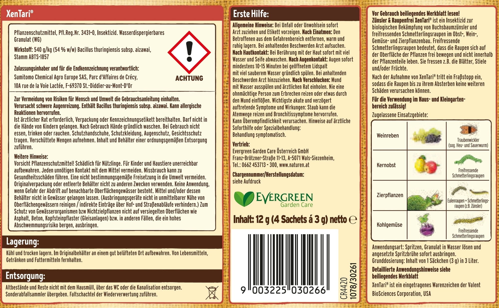 Vásárlói vélemény magyar nyelven: SUBSTRAL® Naturen® Bio puszpángmoly és hernyó elleni szer Xentari