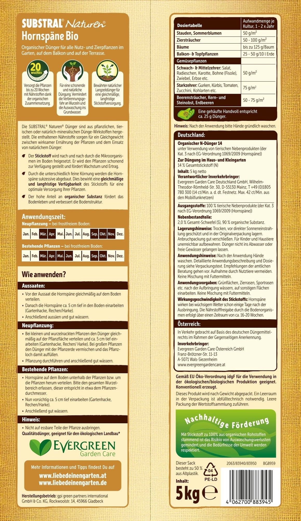 Ez a szerves és természetes nitrogéntrágya a különböző szemcseméretnek és a speciális előkészítésnek köszönhetően célzottan juttat nitrogént a növényeknek. Ideális minden balkoni és kerti növényhez.
