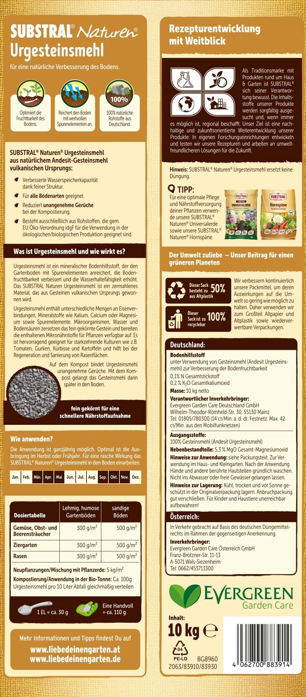 Fedezze fel az eredet erejét a SUBSTRAL® Naturen® kőzetliszttel – egy 100%-ban természetes, Németországból származó andezit vulkáni kőzetliszttel. Ez a finomszemcsés kőzetliszt több, mint egy egyszerű talajjavító szer – ez a kulcs a talaj termékenységének javításához és a talaj értékes nyomelemekkel való fenntartható gazdagításához.