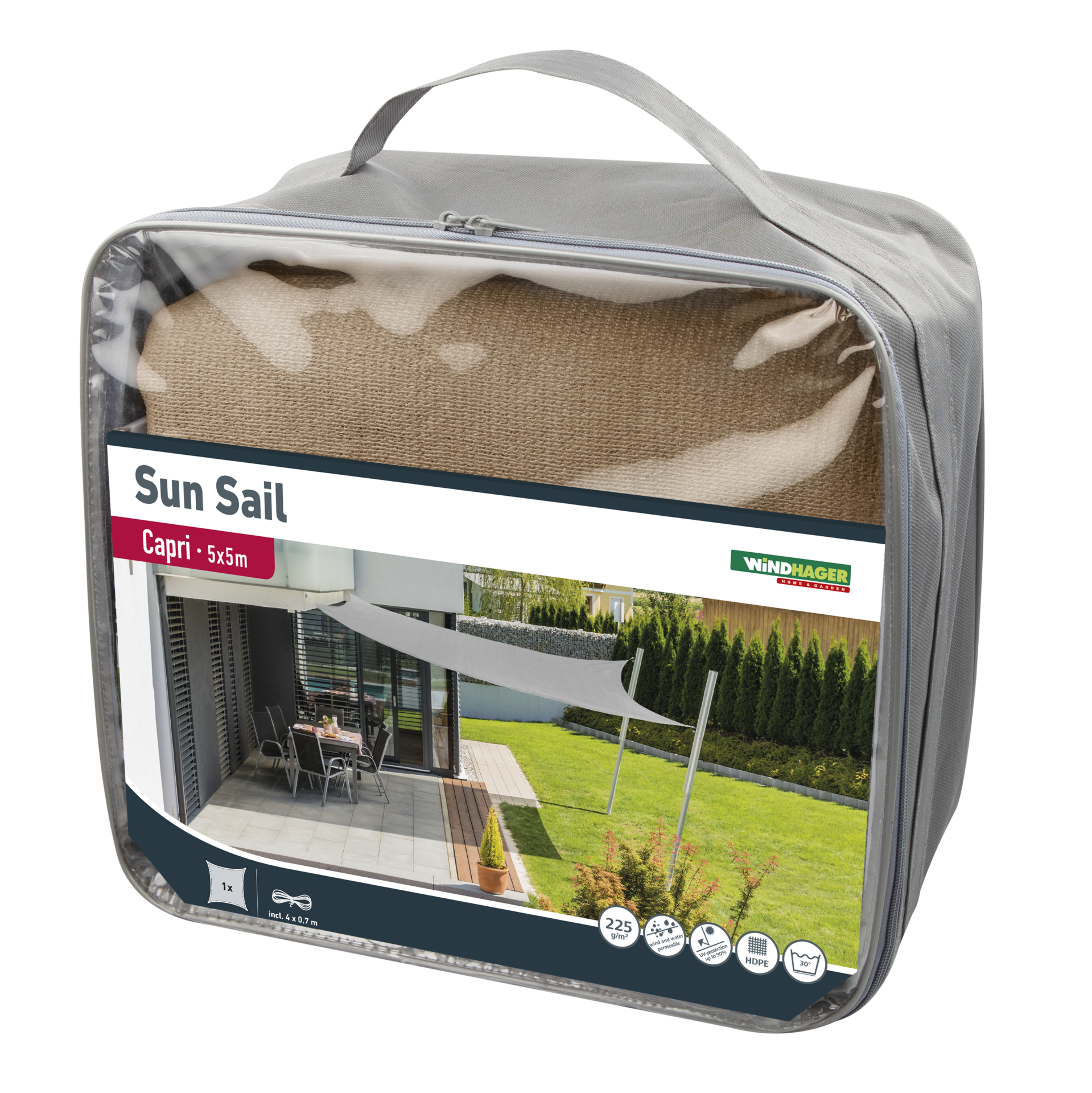 Windhager CAPRI négyzet alakú Napvitorla, 5x5m, Nád